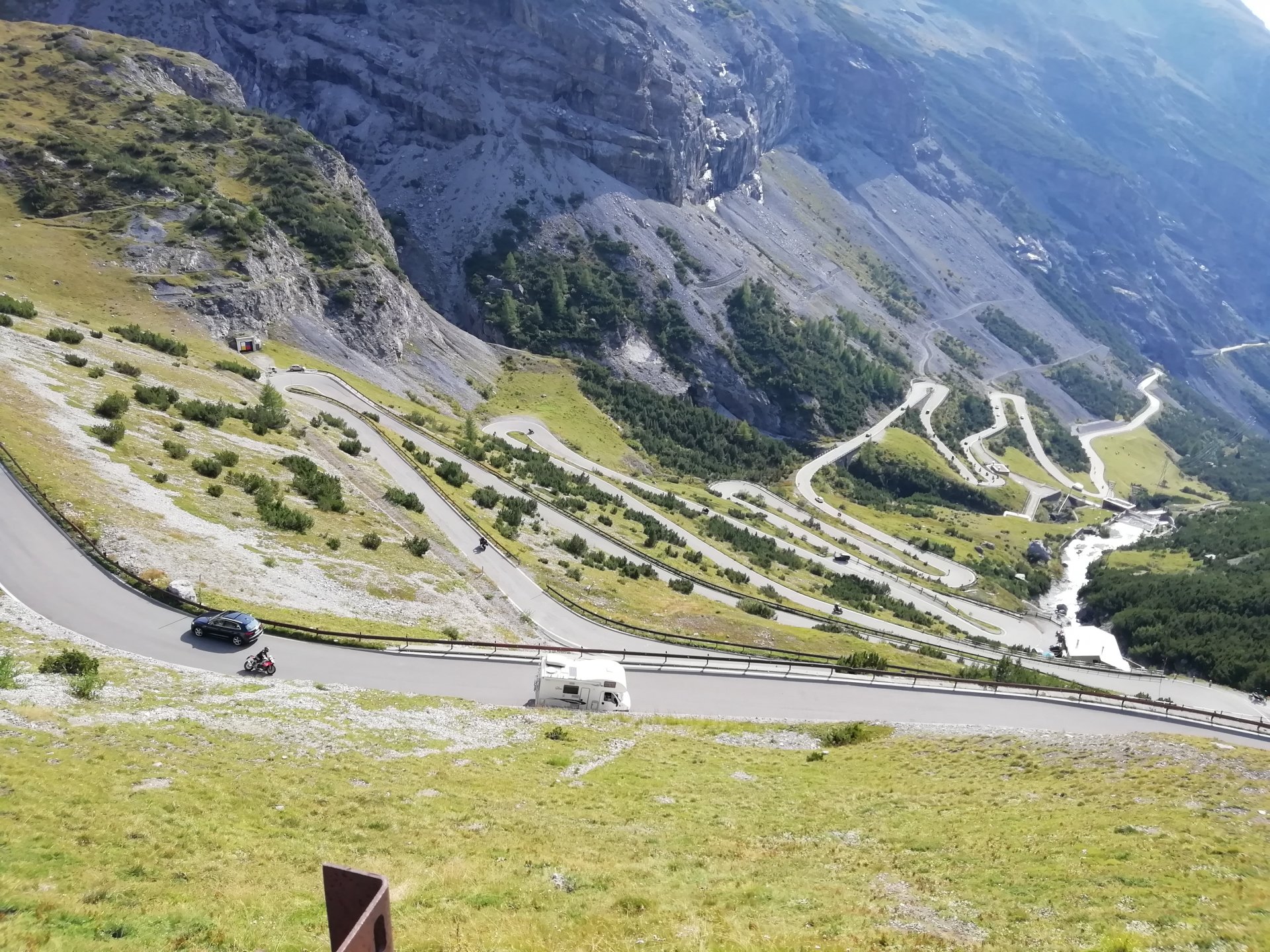La notte è così passata senza problemi e alle 5.30 ho avuto la fortuna di arrivare a Chiavenna e trovare una pasticceria dove mi sono fermato per una doppia colazione! Da lì il sole ha iniziato a illuminare le montagne sopra di me finché al passo del Maloja mi ha accolto riscaldandomi. Una volta superato il passo del Bernina ho avuto la sorpresa di trovare la mia fidanzata Martina, impegnata anche lei in un giro in bici. È stato per me un momento speciale che mi ha caricato per affrontare le ultime salite.