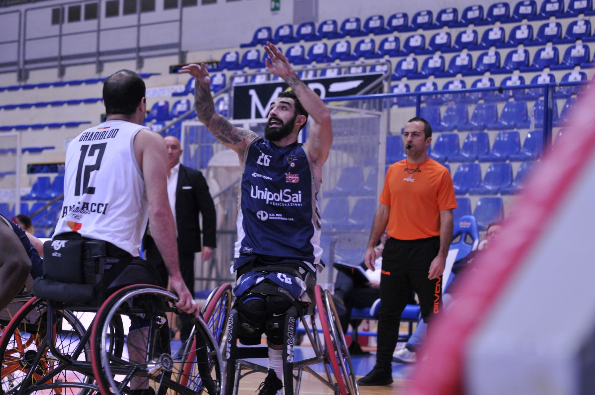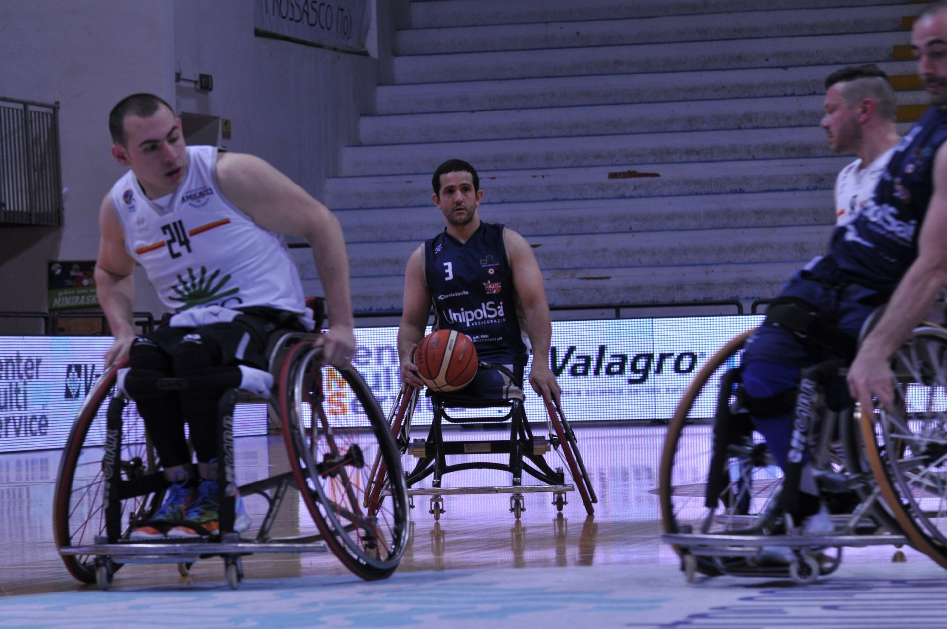 Punto a punto in avvio di secondo quarto. Dopo il 12-12 siglato da Santorelli, Bergna sostituisce Filippo Carossino con Marcos Sanchez. Il brasiliano spezza subito gli equilibri della gara, con De Maggi e Santorelli protagonisti di un break (4-0) che spinge la UnipolSai. A Galliano Marchionni risponde ancora De Maggi. Il finale è tutto biancoblù: prima Sanchez e poi Berdun (protagonista di una tripla sulla sirena) portano il risultato sul 31-16 all’intervallo lungo. Sanchez e De Maggi proteggono il vantaggio della UnipolSai insidiato da Raimunds Beginskis e da Stupenengo. Botta e risposta in questa fase del match con 8 punti siglati per parte. Berdun porta i suoi a +20 (42-22) a 6’20’’ dal termine, poi incrementa lanciato a campo aperto da De Maggi. Santorelli (4) e Sanchez (3) si difendono dagli attacchi degli uomini di Andrea Accorsi per il 51-27 a poco meno di 2’ dal termine.