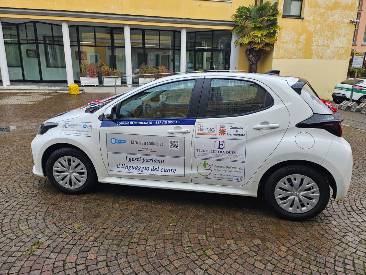 Grazie alla collaborazione tra il Comune di Cermenate, PMG Italia Società Benefit e gli imprenditori del territorio, è stata consegnata al Comune – in comodato gratuito – una Toyota Yaris per svolgere le attività quotidiane delle persone con fragilità. Il veicolo verrà infatti utilizzato per effettuare servizi di accompagnamento a visite mediche, terapie, centri diurni, attività di tempo libero, lavorative e di socializzazione. I dati rilevati nell’intero territorio nazionale confermano sia il continuo innalzamento dell’età media sia l’intensificarsi dei ritmi di vita già oggi frenetici delle famiglie e rendono sempre più necessario individuare strumenti per migliorare la fruizione dei servizi da parte di chi è portatore di una disabilità, qualsiasi essa sia, che ne limita la partecipazione attiva alla vita della società e di conseguenza arricchire la società stessa, anche in termini di valori garantendo piena autonomia e pari dignità sociale a tutti i cittadini.