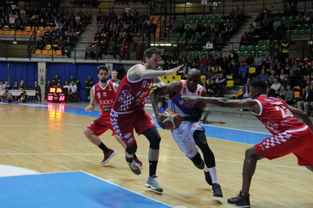 The Flexx Pistoia: Della Rosa 2, McGee 10, Barbon, Laquintana 13, Mian 18, Gaspardo 13, Onuoha 2, Bond 4, Magro 3, Diawara 5, Moore 6, Ivanov 9. Coach: Esposito.
