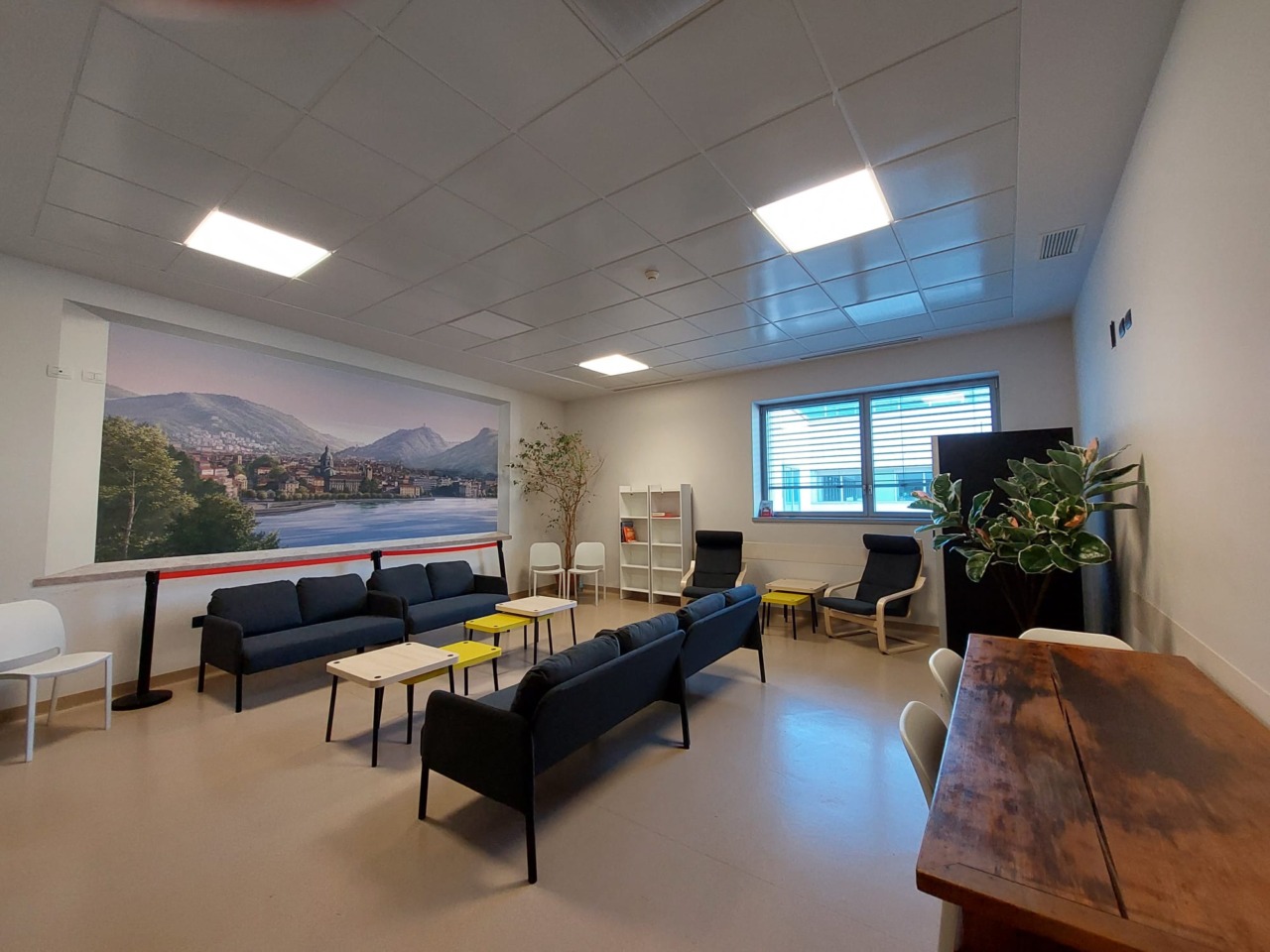 Si tratta di uno spazio all’ingresso del reparto di Ostetricia, al terzo piano dell’ospedale Sant’Anna di San Fermo della Battaglia, dove le mamme possono ritrovarsi insieme ai propri familiari. Sedie, tavolini, divani, due librerie, piante ornamentali sono alcuni degli arredi consegnati e posizionati.