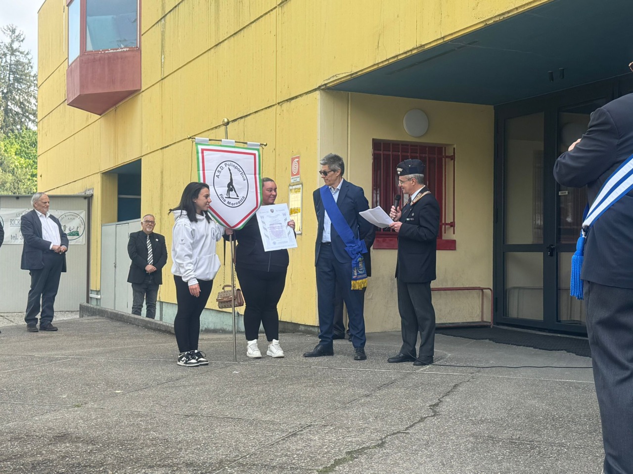 Un secondo momento commemorativo si è svolto davanti al palazzetto dello sport “Di Maria” in via Leonardo da Vinci. Oltre alle autorità civili e militari, alla cerimonia, condotta dal coordinatore provinciale Anc Carlo Colombo, hanno preso parte anche diversi sodalizi del territorio, tra cui la Polisportiva di Fino Mornasco, e i ragazzi e le ragazze della terza media “Scalabrini”, accompagnati dai docenti e dalla dirigente scolastica, Raffaella Piatti.