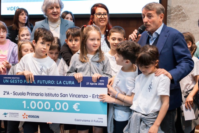L’evento finale del concorso Un gesto per il futuro: la cura si è tenuto questa mattina a Milano, all’interno della Sala Azionisti della sede centrale di Edison, alla presenza di circa 250 rappresentanti delle scuole (tra studenti e insegnanti) che hanno partecipato all’iniziativa. Sul palco, insieme al presidente della Fondazione Costruiamo il Futuro Maurizio Lupi, sono intervenuti Nicola Monti, amministratore delegato di Edison, l’attore Giacomo Poretti, la giornalista Mediaset Chiara Icardi e l’ex calciatore di serie A, e oggi dirigente e allenatore sportivo, Cristian Brocchi. Presenti a questa giornata di premiazione anche Letizia Affatato, dirigente Ufficio scolastico territoriale di Milano, Elena Centemero, dirigente UST di Monza e Brianza e Adamo Castelnuovo, dirigente UST di Lecco. Per prendere parte a questa iniziativa si sono mobilitate 42 classi di 31 istituti scolastici delle province di Lecco, Monza e Brianza, Milano, Como, Bergamo, Varese e Brescia. In totale sono stati proposti 52 elaborati (valutati da un comitato creato ad hoc per l’occasione) e sono stati 1.150 gli studenti coinvolti.