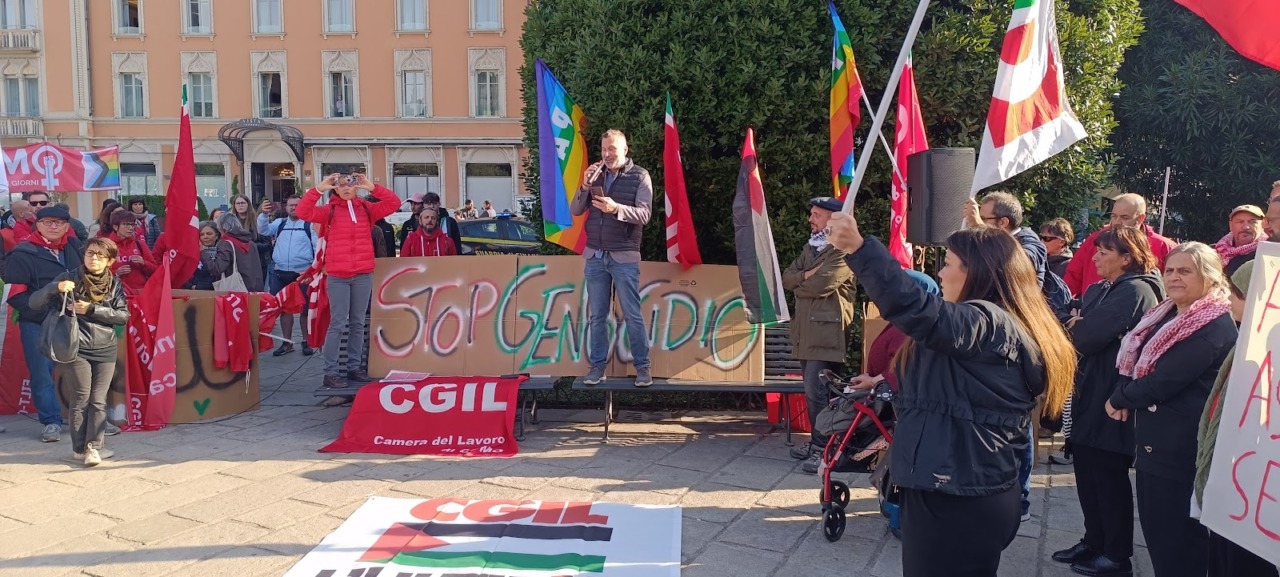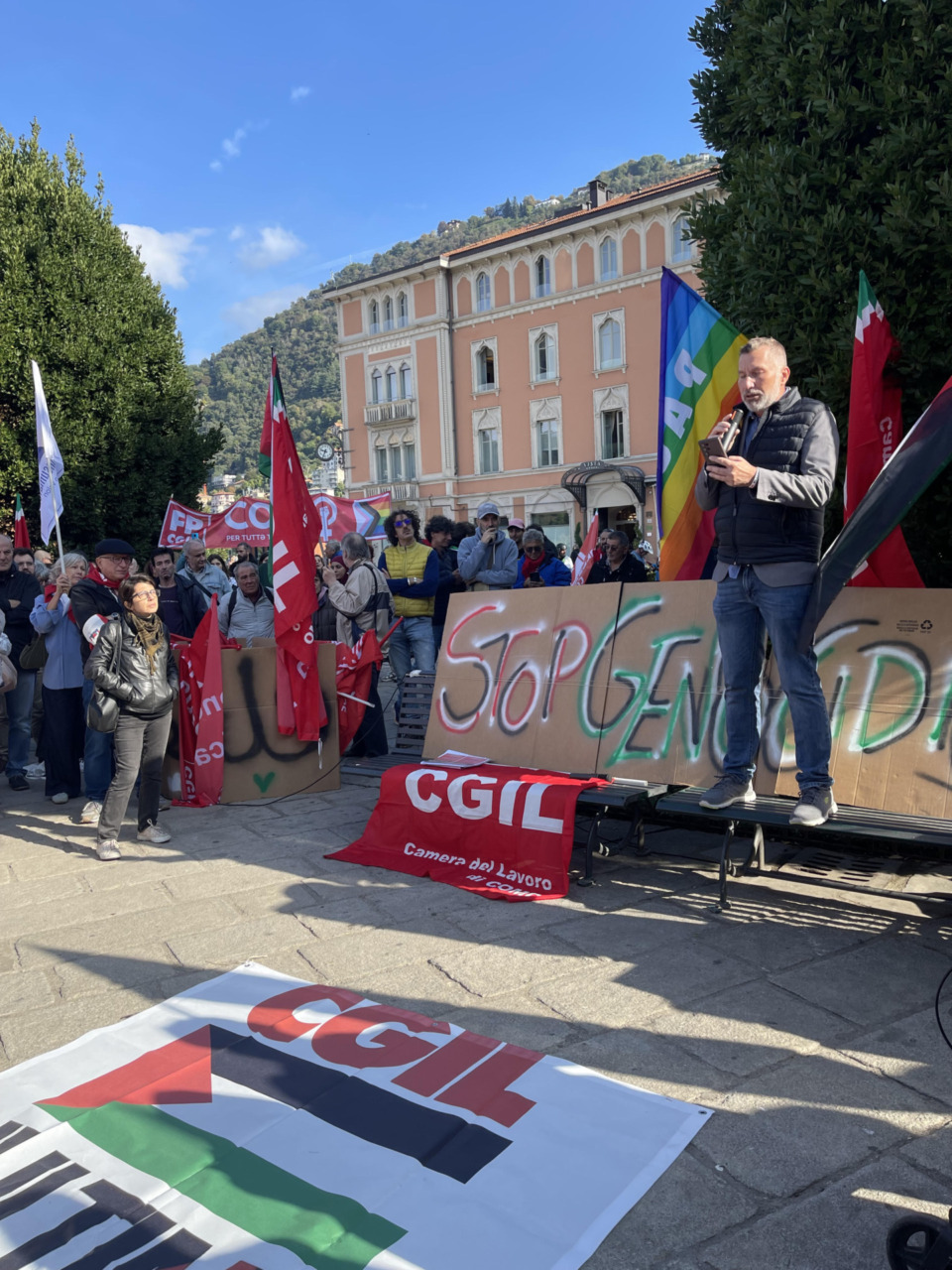 La manifestazione indetta in concomitanza dello sciopero proclamato dalla Cgil ha unito centinaia di persone in piazza Cavour. Il comunicato di Cgil Como: “I manifestanti, con una serie di slogan pacifisti e con gli interventi del sindacato, delle associazioni, dei partiti ma anche di singoli cittadini e studenti, hanno portato la loro solidarietà ai componenti della Flotilla illegittimamente fermati dalle forze israeliane. I manifestanti hanno richiesto un intervento del governo italiano per la liberazione di tutti gli ostaggi e i prigionieri politici, per il riconoscimento dello Stato Palestinese, per l’apertura di corridoi umanitari e il ripristino del diritto internazionale. Al grido di “Stop al genocidio” la piazza ha voluto indirizzare al governo un messaggio chiaro anche da Como: le lavoratrici e i lavoratori di Como, i pensionati, gli studenti, i cittadini sono vicini al popolo palestinese e rivendicano per l’Italia un ruolo chiaro nell’azione diplomatica per il ripristino della pace e per il rispetto del popolo palestinese”.
