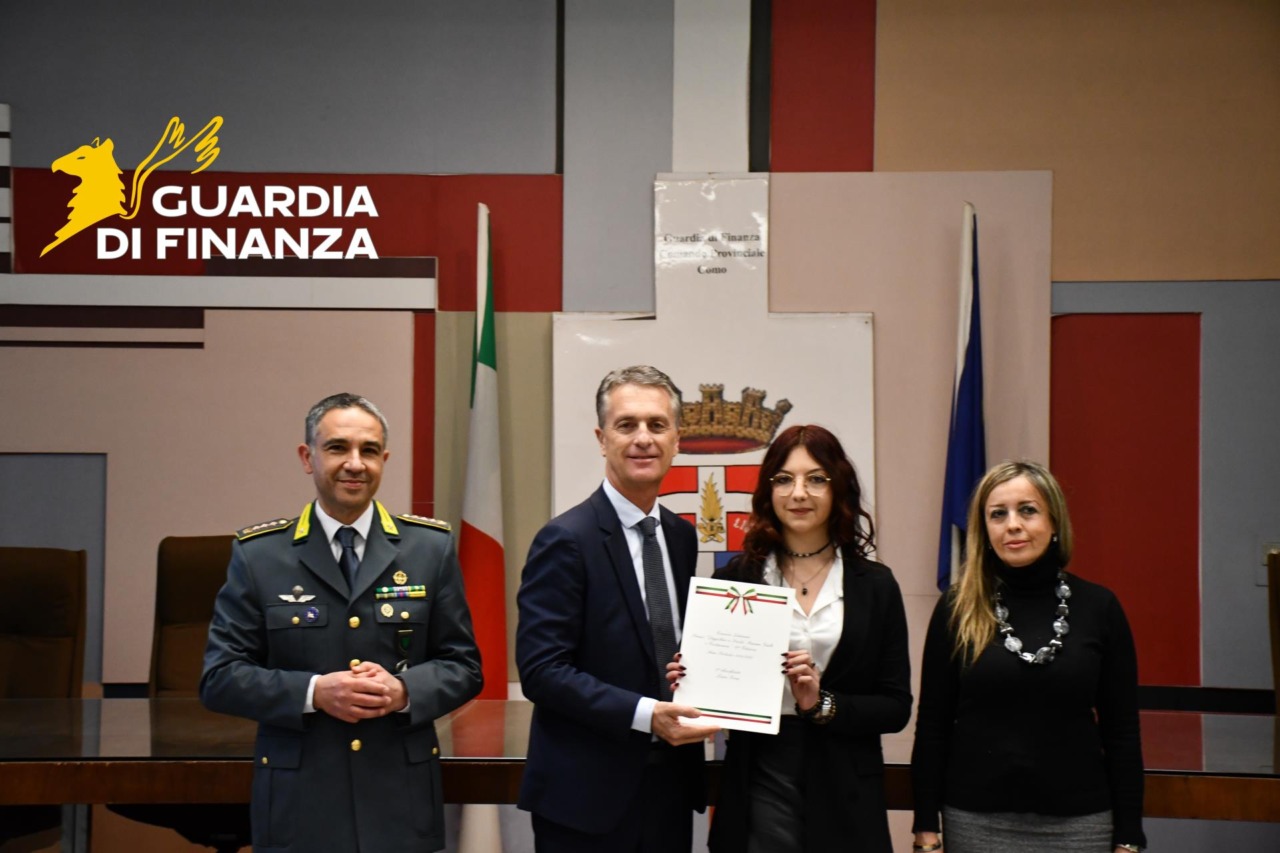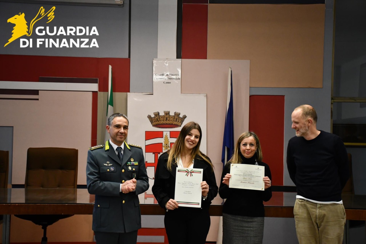 Al termine della valutazione dei 51 elaborati, la Commissione, composta dal Comandante Provinciale della Guardia di Finanza, da due docenti dell’Ufficio Scolastico Territoriale e da due Ufficiali del Corpo, ha assegnato dei riconoscimenti ai tre studenti più meritevoli: al primo posto Beatrice Limonta, del Liceo Classico e Scientifico “Alessandro Volta” di Como, al secondo Luisa Erras, sempre del “Volta” , e al terzo posto Davide Contini, del Liceo Scientifico e Linguistico “Paolo Giovio” di Como.