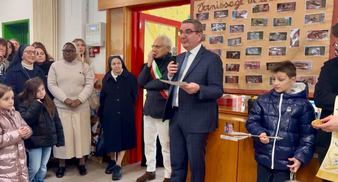 A prendere la parola, anche il sindaco Ermes Tettamanti: “Festeggiare 50 anni è davvero emozionante. Migliaia di storie che hanno attraversato questi corridoi. Significa intrecciare l’attività educativa con la vita della comunità ronaghese. La prima emozione l’ho vissuta stamattina quando sono andato a bere il caffè e ho visto le suore. Mi sono chiesto cosa fanno quattro suore al bar. Poi, guardando bene, ho riconosciuto suor Teresa: è stata l’insegnante dei miei figli 40 anni e mi sono emozionato. Questo lo dice lunga su quello che la scuola materna lascia in ognuno di noi. Forse il ricordo che tutti ci portiamo dietro. E’ la prima uscita del bambino. E già il fatto che la scuola di Ronago è in crescita la dice lunga, significa che la qualità è eccezionale e per questo ringraziamo Agostino, insegnanti e a tutti i ringraziamenti fatti dal presidente a cui mi associo. Come Comune rinnovo disponibilità a essere vicini alla scuola. Quando guardiamo i conti siamo ammirati e felici”.