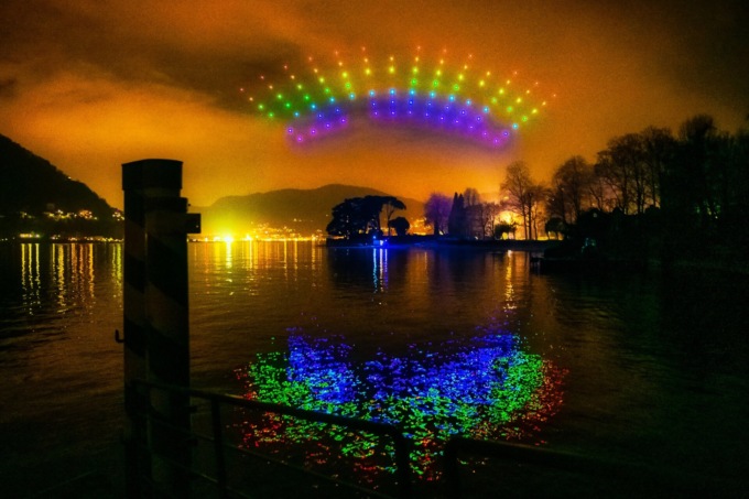 Spettacolo di luci: il meraviglioso “esperimento” dei 100 droni nei cieli del Lago di Como