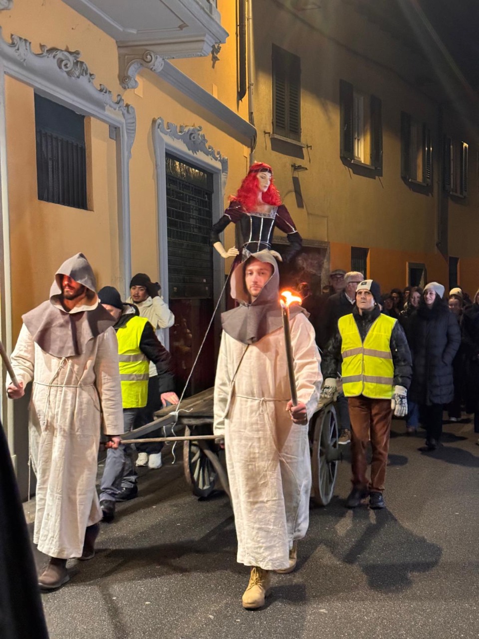 In una piazza Garibaldi gremita come da usanza Luigi Marelli della Compagnia Teatrale San Genesio dal balcone della Permanente ha letto la sentenza, scritta da Giancarlo Montorfano, che ha mandato al rogo la traditrice.