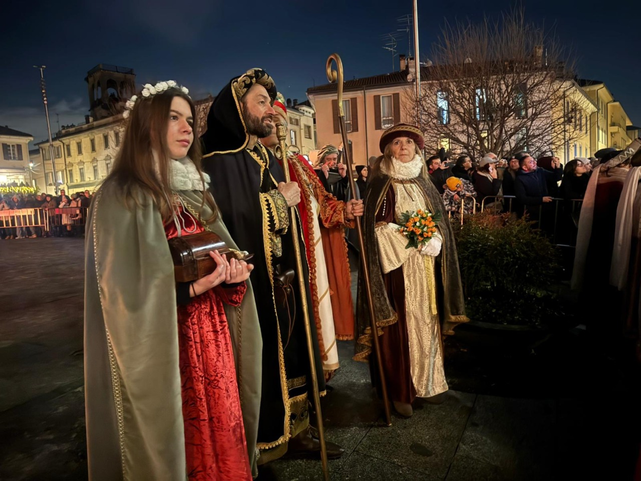 L’appuntamento con il rogo della Giubiana è iniziato alle 20.45 al parco Martiri delle Foibe. Da qui è partito il corteo, messo in scena dal gruppo di rievocazione coordinato da Luisella Arrighi e Serena Azzini, e accompagnato dai «tamburini» del Corpo Musicale La Cattolica, che ha scortato la cortigiana per le vie del paese fino a giungere nella piazza cittadina.