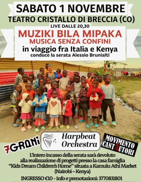 L’intero incasso dell’evento musicale al teatro Cristallo di Breccia sarà devoluto a sostegno della casa famiglia “Kids Dream Children’s Home”, attiva in Kenya a Kamulu Athi Market (Nairobi).
