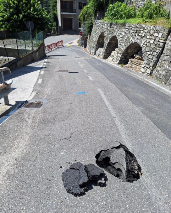 Il nubifragio di venerdì 12 luglio, che aveva provocato due grosse frane in paese, aveva solamente peggiorato la situazione. Alla deformazione del manto stradale, dovuta ad una perdita nella rete idrica comunale, si era infatti aggiunto il cedimento in più punti della rete fognaria in seguito alla caduta di fango e detriti. Como Acqua aveva dunque comunicato che i lavori di manutenzione della condotta si sarebbero protratti fino al 26 luglio: da qui la necessaria chiusura della strada che conduce al centro sportivo e alla parrocchia di Caslino d’Erba.