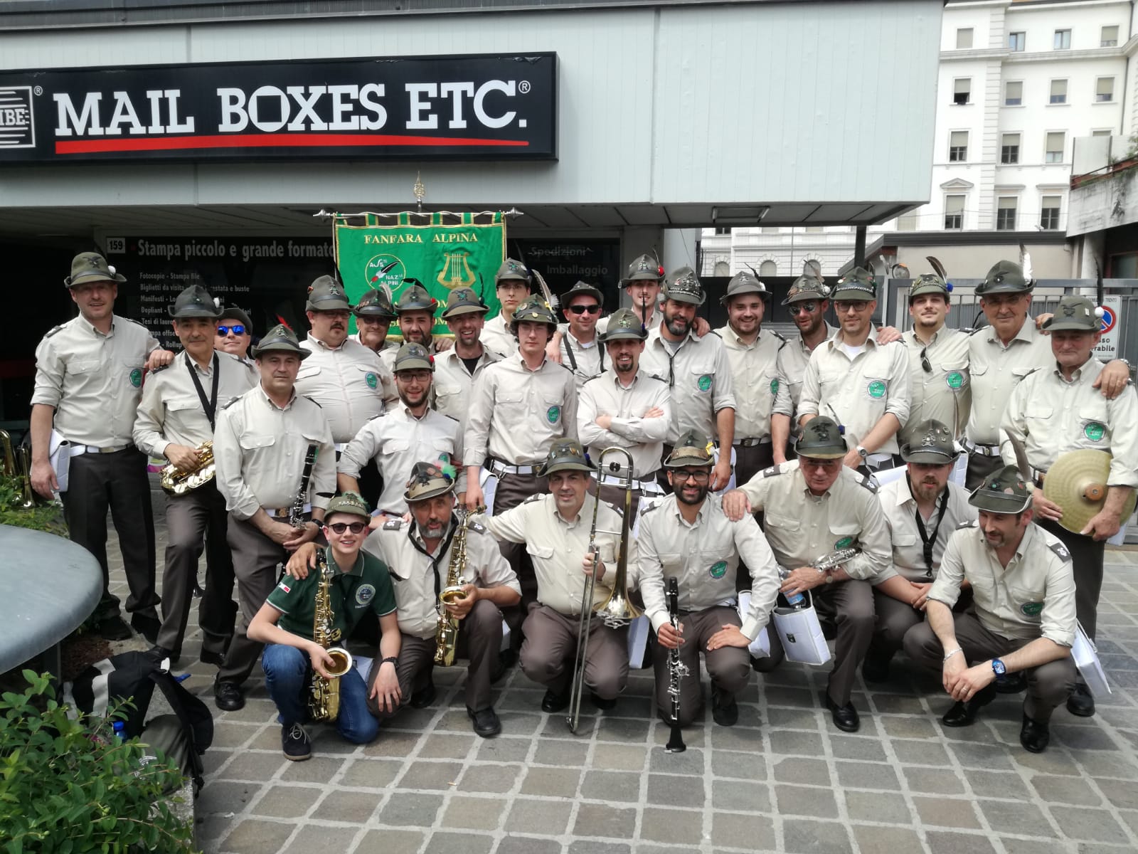 Fanfara alpina di Olgiate Comasco all’adunata nazionale degli Alpini a Trento. Presente anche la sezione di Como con i primi cittadini: da Olgiate il sindaco Simone Moretti, l’assessore Maria Rita Livio anche presidente della Provincia di Como.