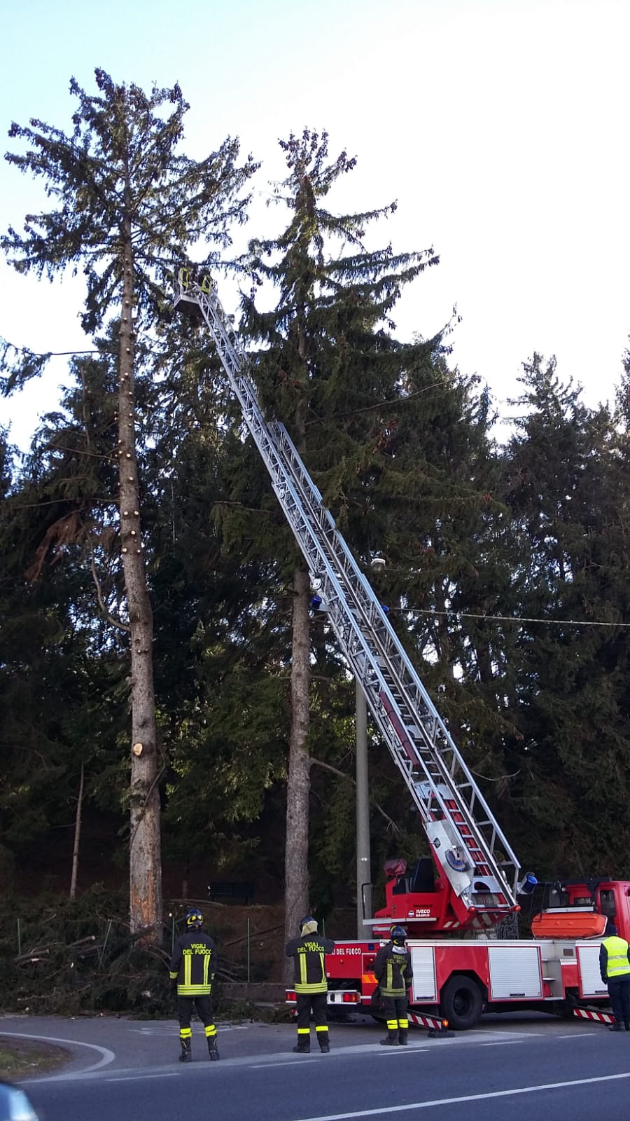 La segnalazione è arrivata oggi intorno alle 14. Un pino alto oltre 25 metri era infatti in condizioni precarie a causa del forte vento.