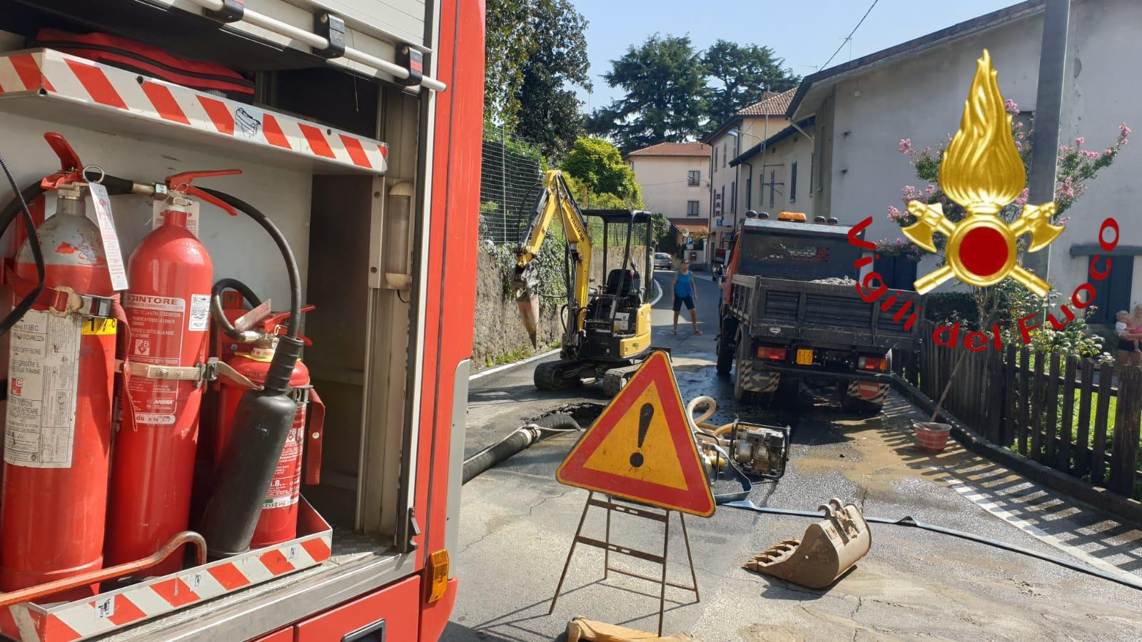 Intorno alle 15.50 di oggi, giovedì 29 agosto 2019, i Vigili del fuoco del comando provinciale di Como sono intervenuti con la partenza del distaccamento di Cantù in via Carcano a Vertemate con Minoprio per un allagamento dovuto alla rottura di una tubazione. Il lavoro dei Vigili del fuoco è consistito nel prosciugamento dello scavo e a mantenere il livello dell’acqua fino al tamponamento della perdita, allo scopo di evitare l’allagamento dei piani bassi di una casetta che si trovava a ridosso dello scavo.