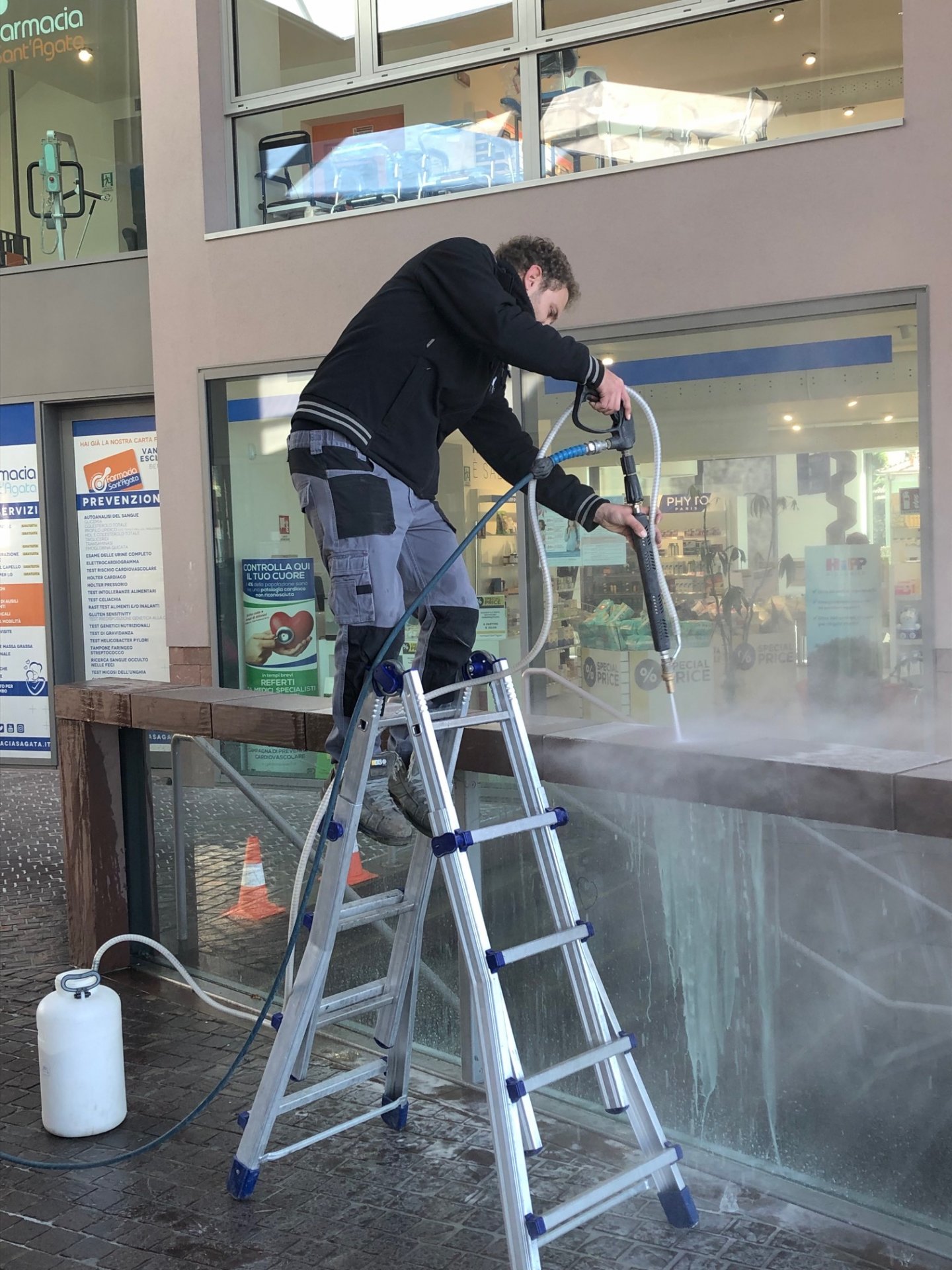 Intervento gratuito, grazie alla disponibilità di “CleanArt”, ditta di Lurate Caccivio specializzata nella riqualificazione urbana e nella rimozione di graffiti. Pulizia concordata dal Comune con la ditta che ha messo in azione la sua unità mobile. L’obiettivo era quello di una completa pulizia della balaustra della balconata affacciata su piazza Italia, che era stata vandalizzata durante la notte di Halloween.