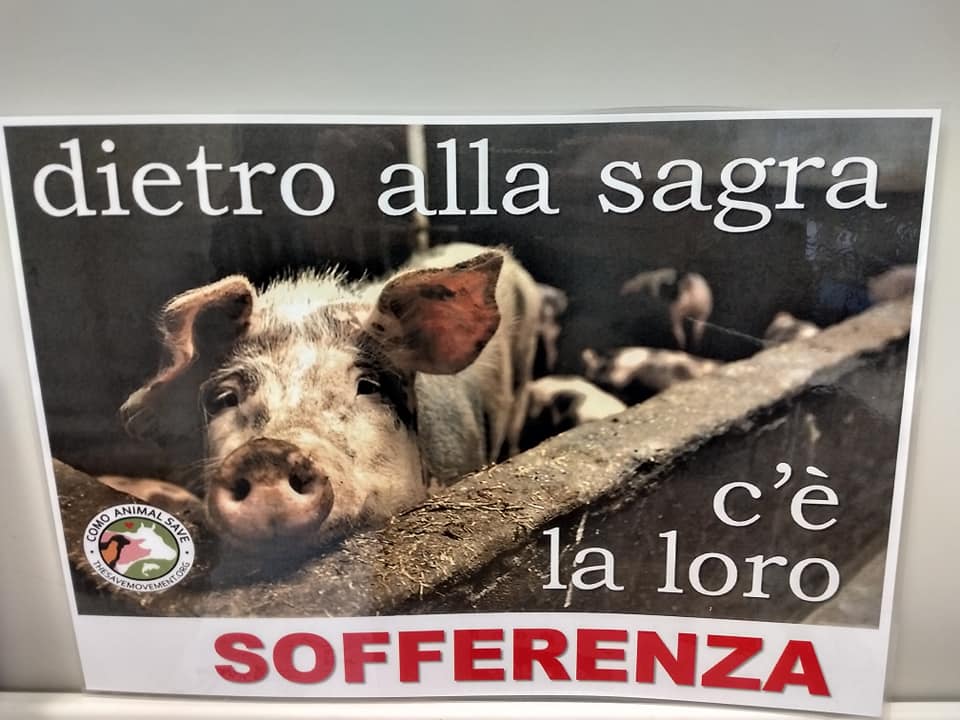 “Saremo presenti alla fiera, per ricordare a visitatori e clienti che ciò che stanno per ordinare alla carta erano individui pacifici, intelligenti, socievoli e con una grande voglia di vivere – hanno spiegato gli organizzatori del presidio informativo, ovvero i gruppi Como Animal Save, La LORO Voce- Iene vegane e The Save movement attraverso Facebook – Il nostro approccio è pacifico e nasce dal desiderio di risvegliare quel senso di protezione verso gli innocenti, proprio come tempo fa si è risvegliato in noi”.