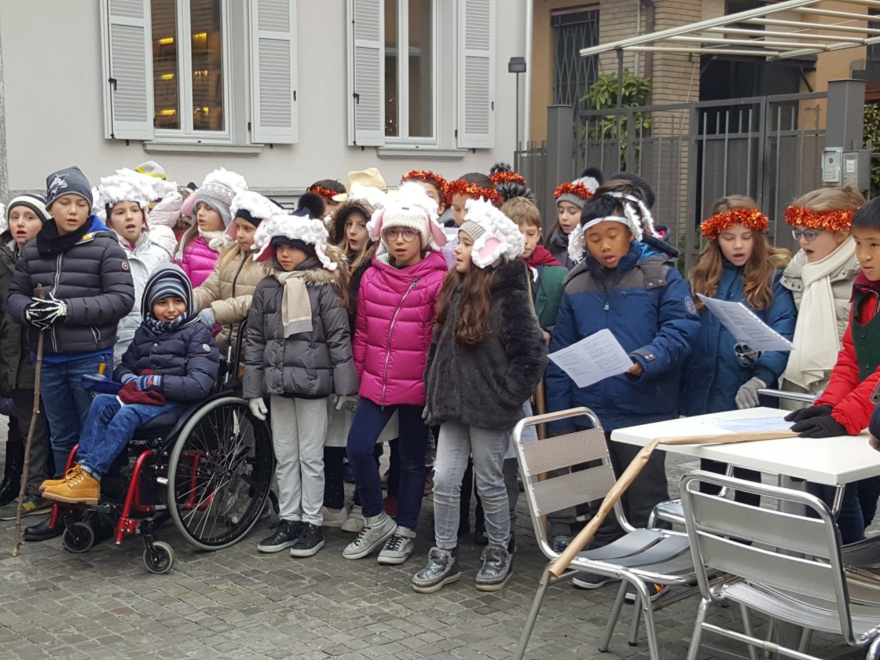 Le classi dalla prima alla quinta primaria dell’istituto San Vincenzo questa mattina, venerdì 22 dicembre, hanno fatto gli auguri di Natale alla città con uno speciale spettacolo in giro per le vie. Partiti dalla scuola si sono diretti prima alla scuola dell’infanzia “Gianetti”, dove hanno cantato e recitato poesie. In seguito si sono recati nella piazzetta del Sartori. Qui è iniziata anche la messa in scena del peregrinare che Maria e Giuseppe hanno dovuto affrontare alla ricerca di un posto dove alloggiare nella notte in cui nacque Gesù.