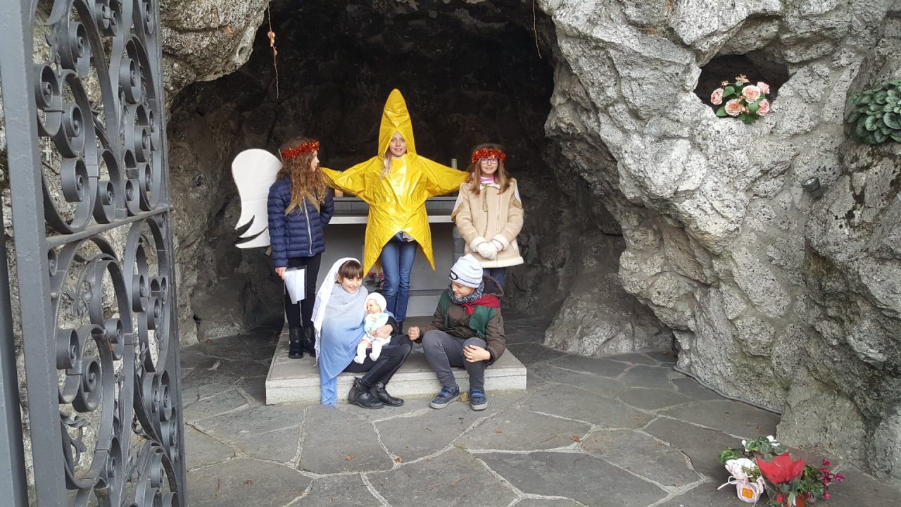 Lo spettacolo itinerante si è concluso all’interno della grotta della Madonna, dove è stata messa in scena la nascita di Gesù. E per finire altri canti e poesie dei bambini prima di fare ritorno a scuola.