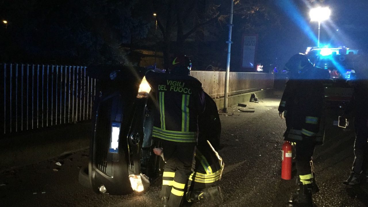Auto si ribalta dopo essere finita contro un cancello FOTO