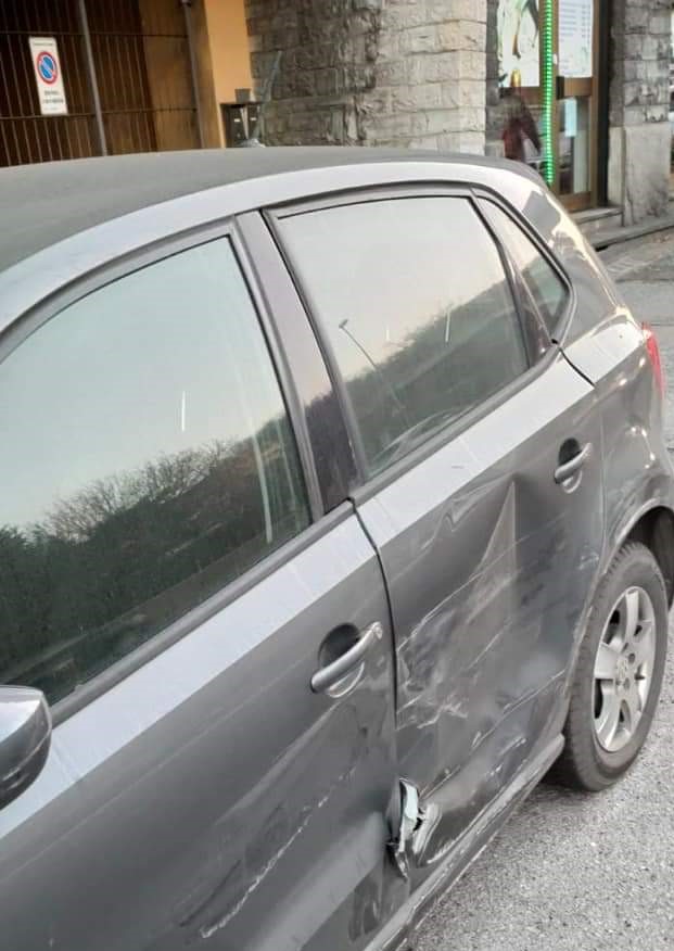 Nel tardo pomeriggio di lunedì 6 gennaio 2020 Federica Picarelli, residente in via Turati, e il compagno, residente a Bologna, hanno ritrovato l’auto, una Volkswagen Polo grigio scuro, parcheggiata in via Napoleona zona Camerlata, di fronte al negozio “Cucine e living”, con un ingente danno alla portiera sinistra.