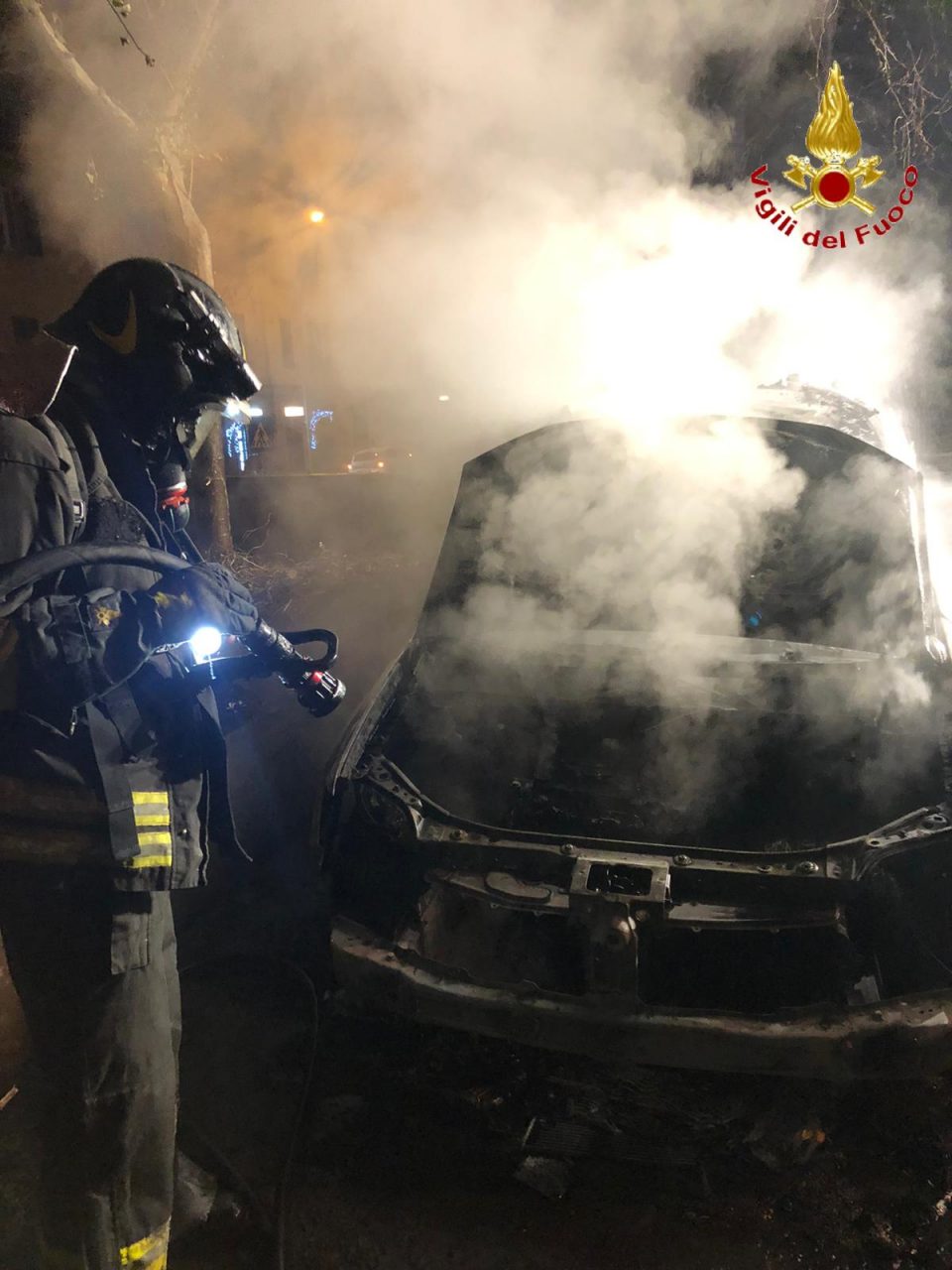 Auto in fiamme nella notte in via Bellinzona FOTO