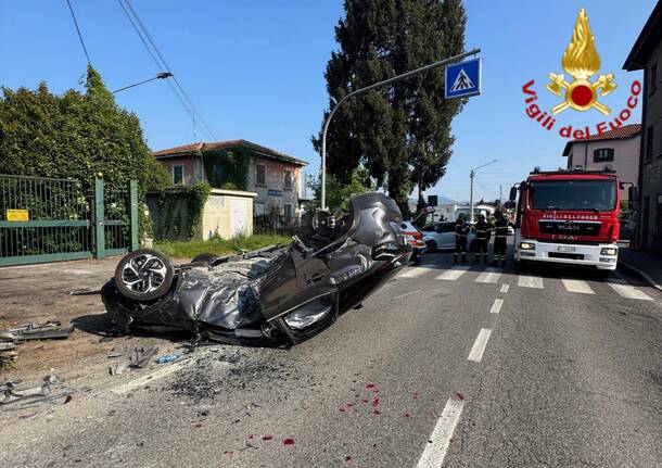 Auto ribaltata a Solbiate con Cagno: conducente ferito e soccorso in codice giallo dopo lo schianto in via Mazzini.