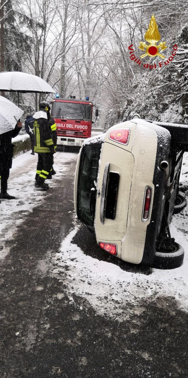 Un’auto stava percorrendo via XXVII Maggio quando, dopo essersi scontrata con un’altra vettura, si è ribaltata. A quel punto una Mini di colore bianco è finita nel fosso. Fortunatamente non c’è stato nessun ferito ma la strada è stata chiusa per prevenzione. Il fondo infatti era molto ghiacciato a causa del maltempo e delle neve. Sul posto i Vigili del fuoco che sono prontamente intervenuti per rimuovere l’abitacolo dalla strada.