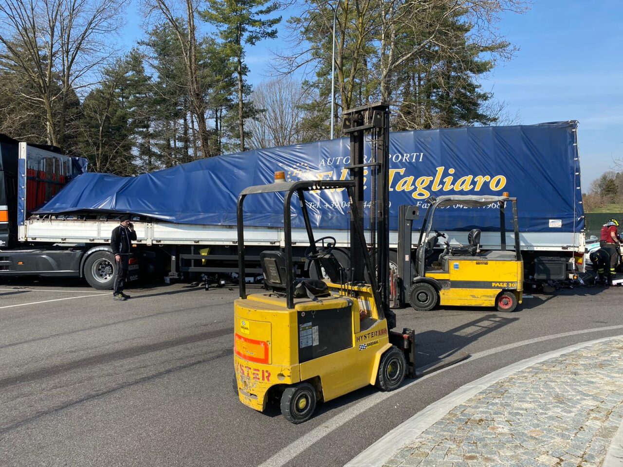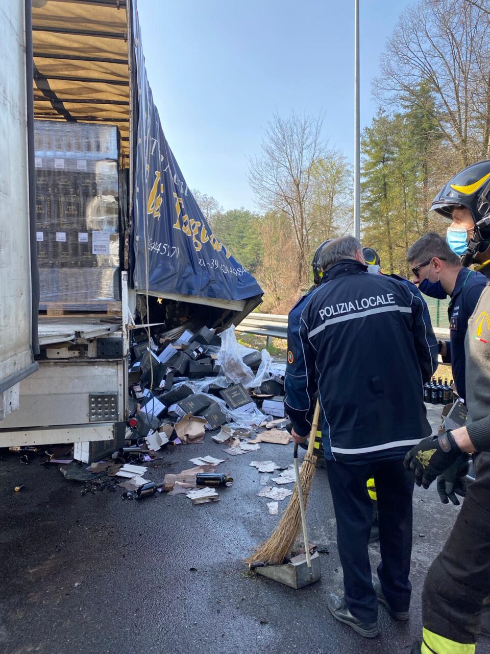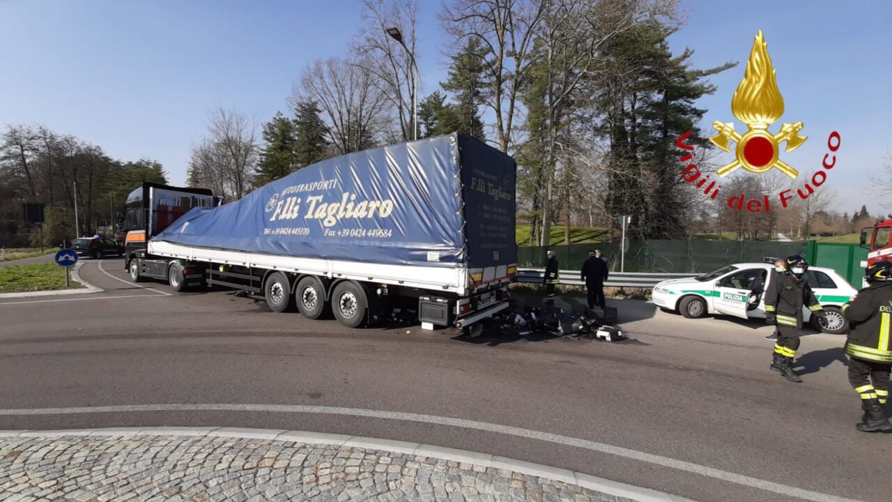 Autoarticolato esce di strada e perde il carico. L’episodio è avvenuto questa mattina, giovedì 25 marzo 2021, a Cassina Rizzardi.