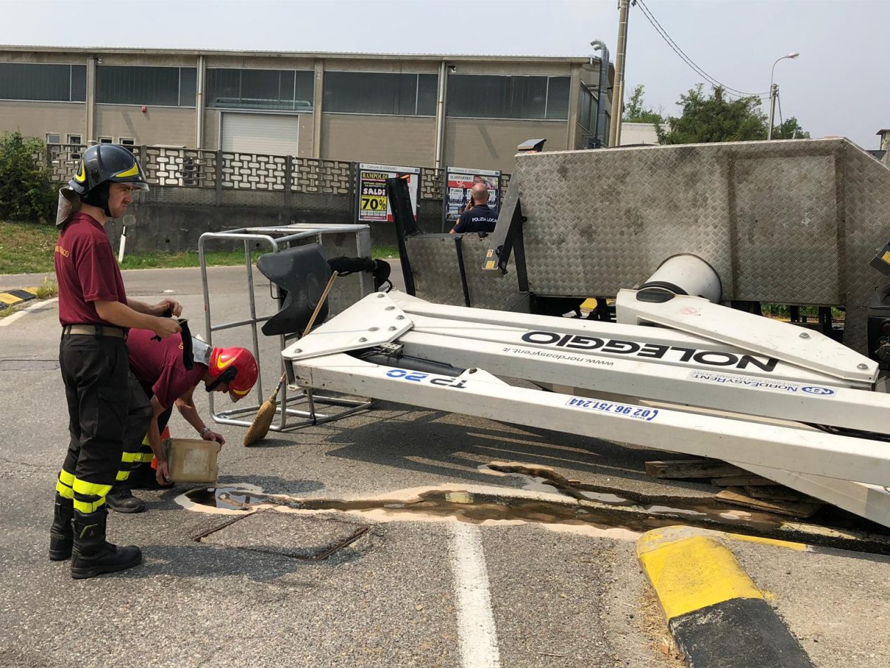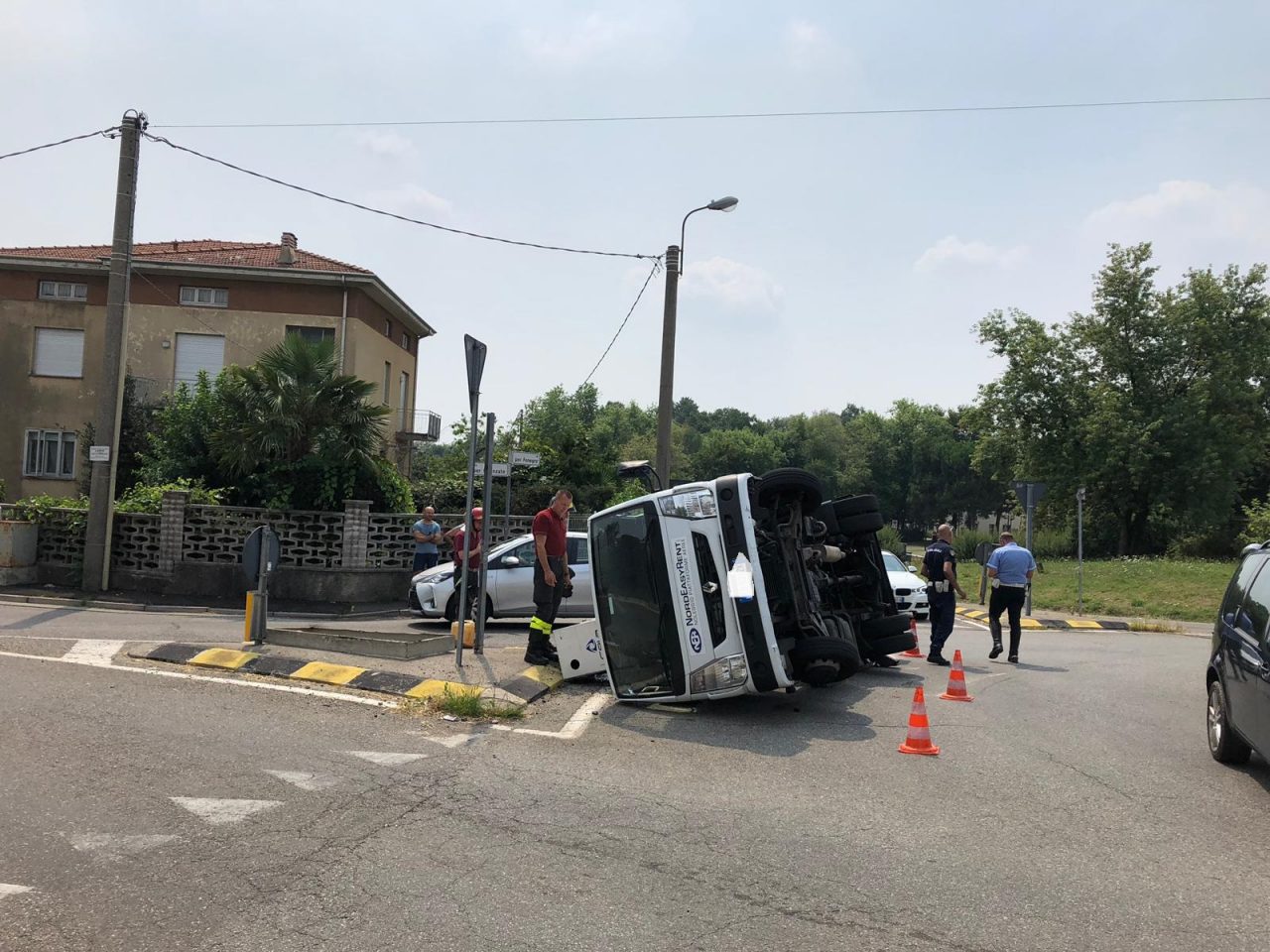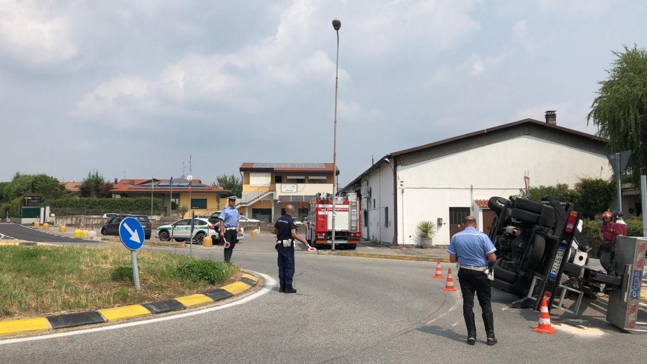 L’incidente è avvenuto qualche minuto prima delle 11.30 di questa mattina, sabato 20 luglio. Il mezzo con cestello, condotto da un uomo di 58 anni, si è ribaltato una volta imboccata la rotatoria di via per Fenegrò. Fortunatamente il conducente è rimasto illeso.