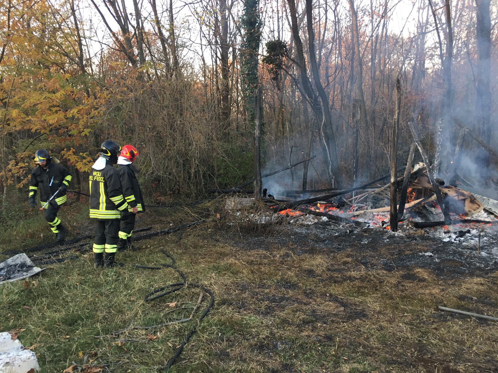 Capanno in fiamme, intervento dei Vigili del fuoco a Castelnuovo Bozzente.