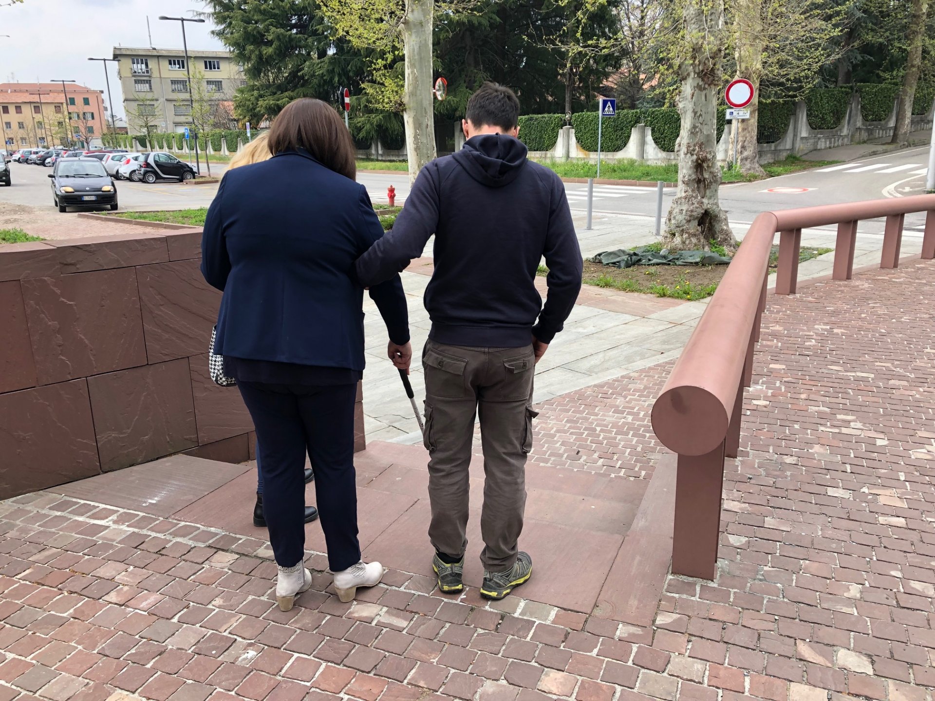 Cieca a caccia di barriere architettoniche col suo bastone bianco