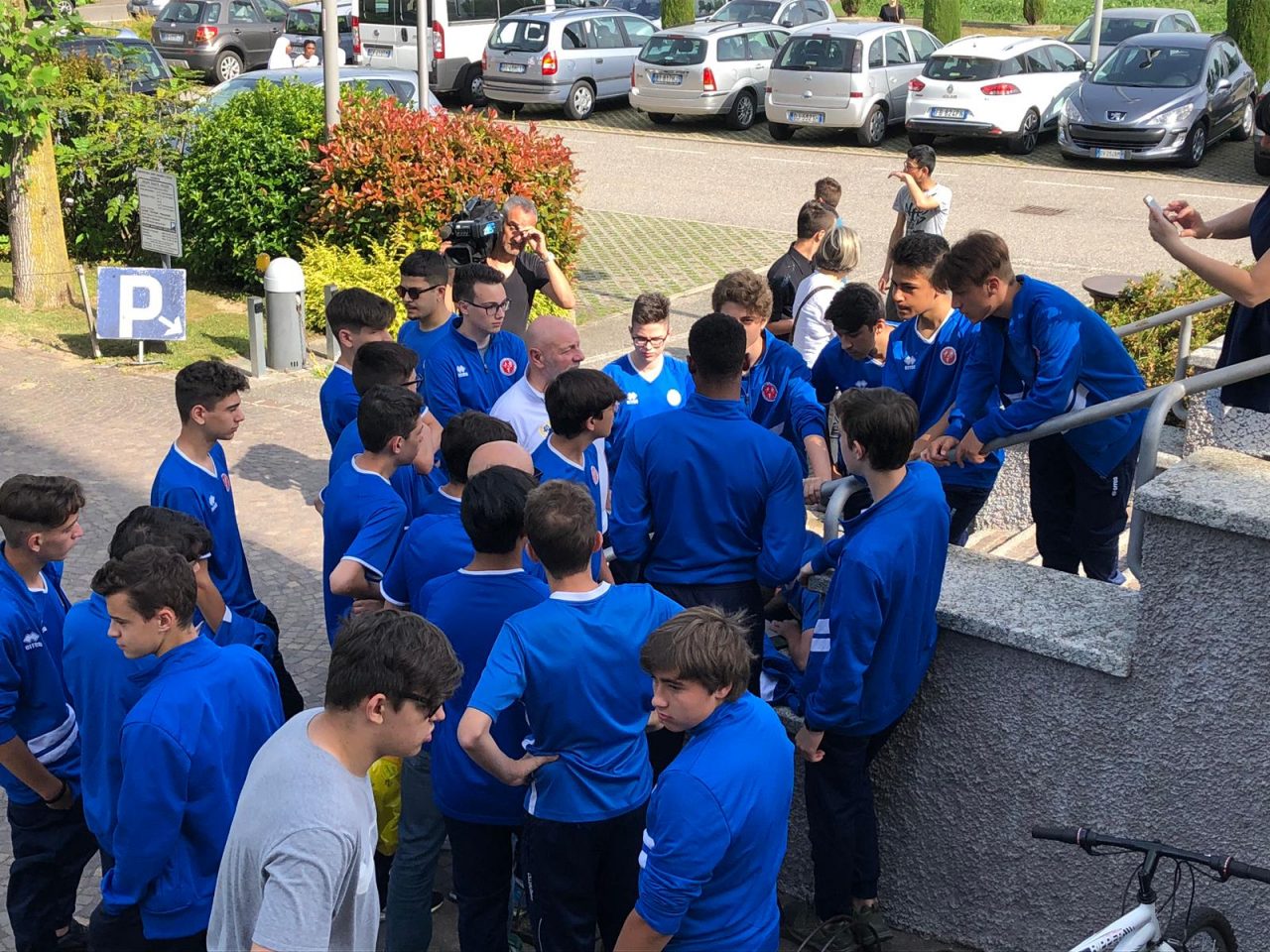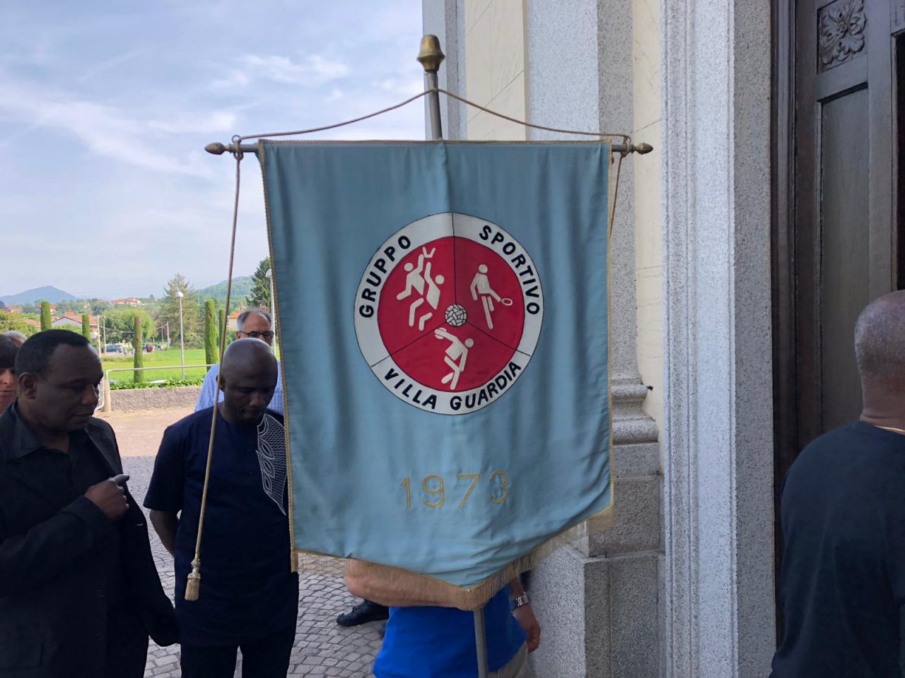 Sono presenti atlete e atleti in divisa della Polisportiva Colverde ma anche del Gs Villa Guardia col suo stendardo, dove il giovane di Gironico giocava a calcio.