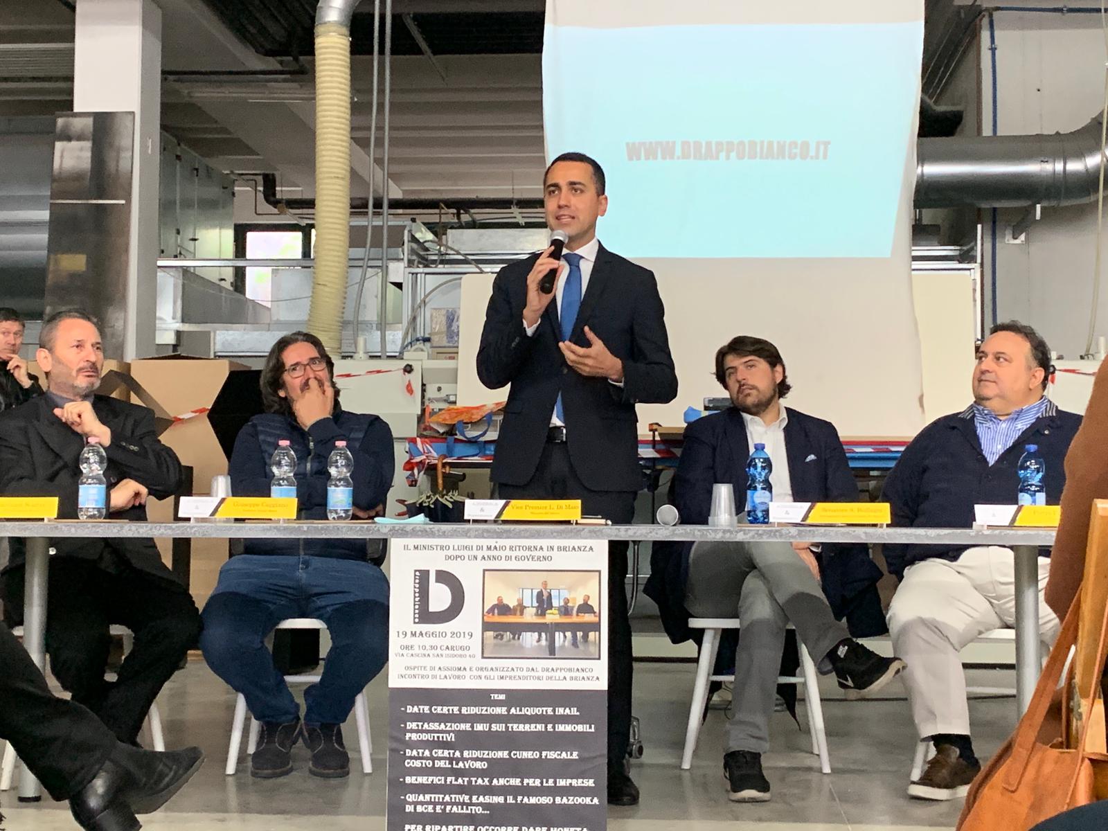 Di Maio a Carugo nella mattinata di oggi, domenica 19 maggio. Il ministro del Lavoro ha parlato a trecentosessanta gradi.