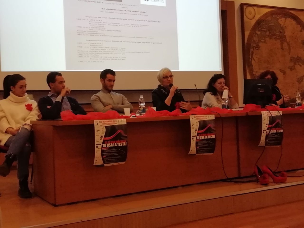 Giovedì all’istituto “Jean Monnet” di Mariano Comense gli studenti hanno partecipato a un incontro tenuto  da due criminologhe, Isabella Merzagora e Enrica Beringheli,  che hanno toccato le varie sfaccettature del delicato tema della violenza sulle donne. L’iniziativa era inserita nella campagna voluta dall’associazione Penta di Mariano Comense, di cui è presidente Rosaria Battaglia, rassegna che ha coinvolto con successo più location nei nostri Comuni. Presente alla giornata anche la preside Leonarda Spagnolo.