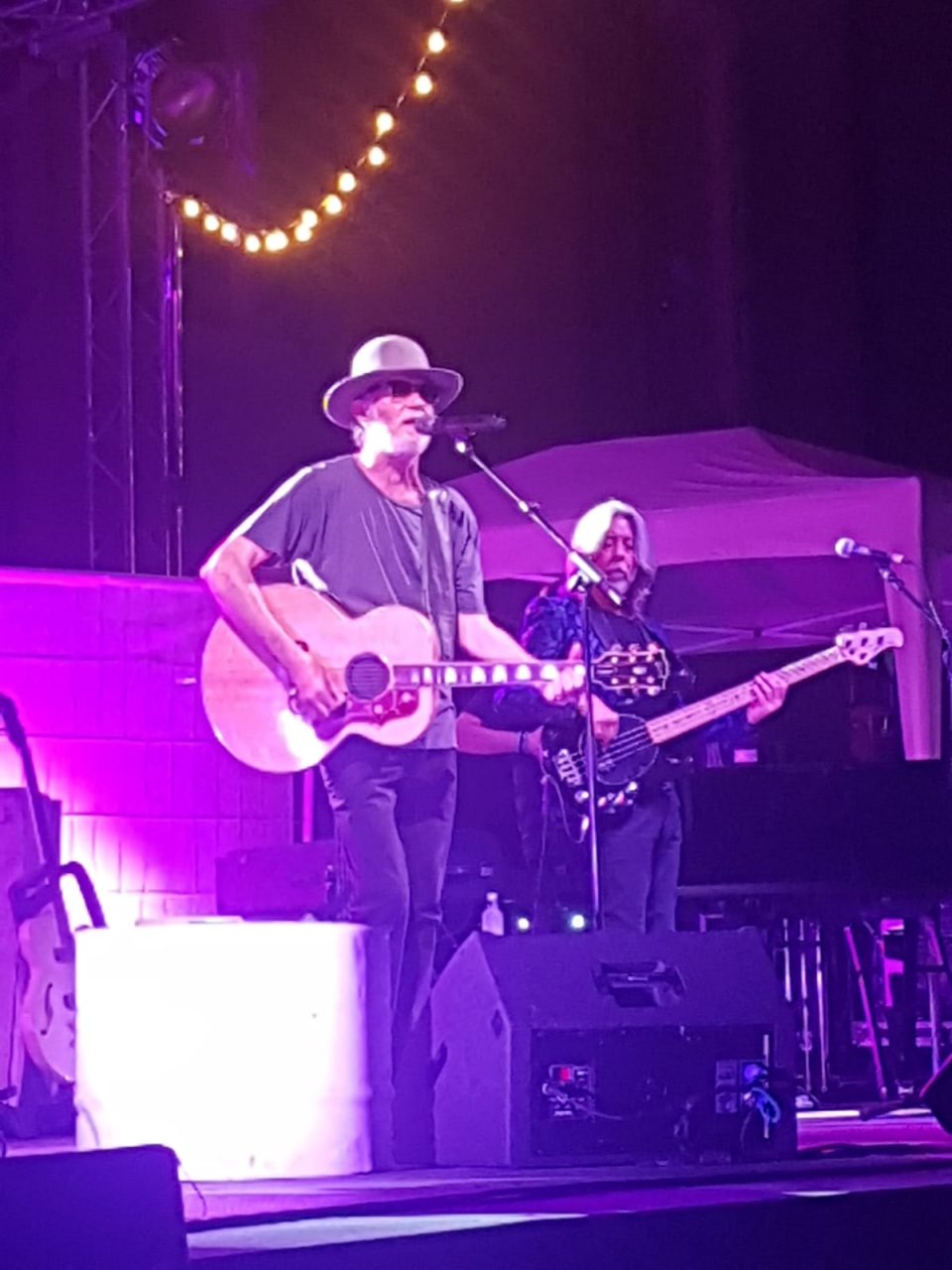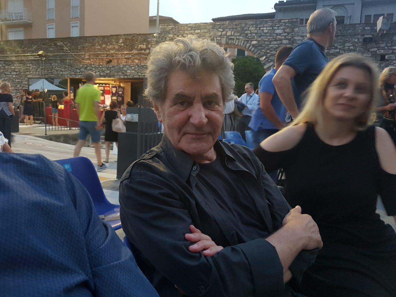 Emozionante è stato anche sul finale, il duetto con la moglie Chicca, la sua “sposa”, come l’ha definita lui stesso, che lo accompagna da anni nella vita e nella musica. La coppia ha cantato un pezzo di Murolo “Anema e core”, strappando numerosi applausi al pubblico incantato dalle note e dalla poesia che aleggiava nella bella cornice dell’arena, incastonata da una notte magica, illuminata da uno spicchio di luna e dalla luce del cupola del Duomo.
