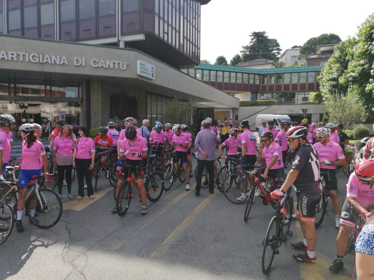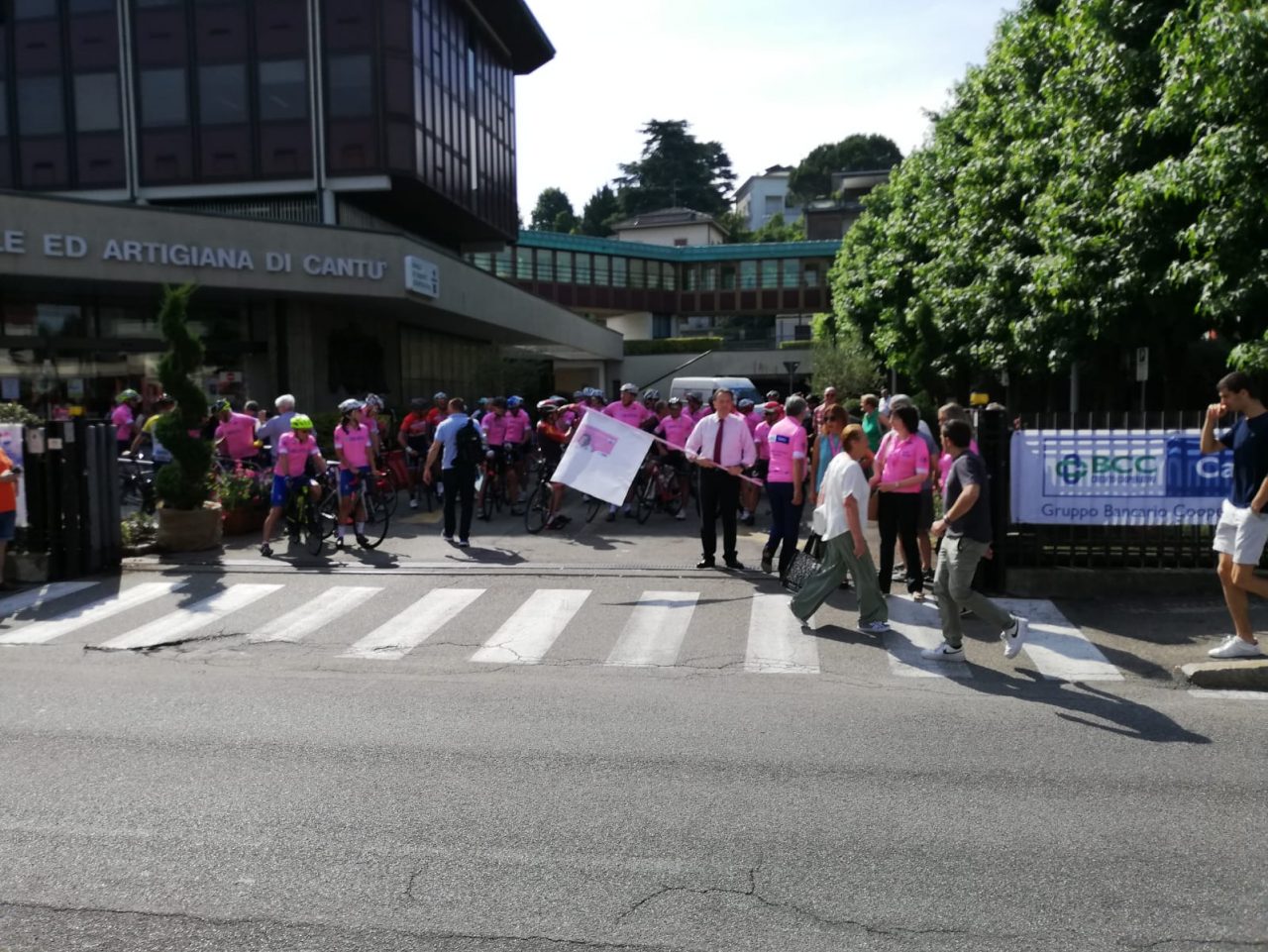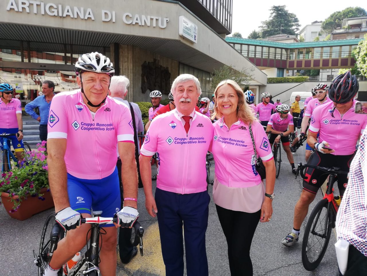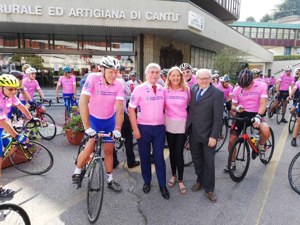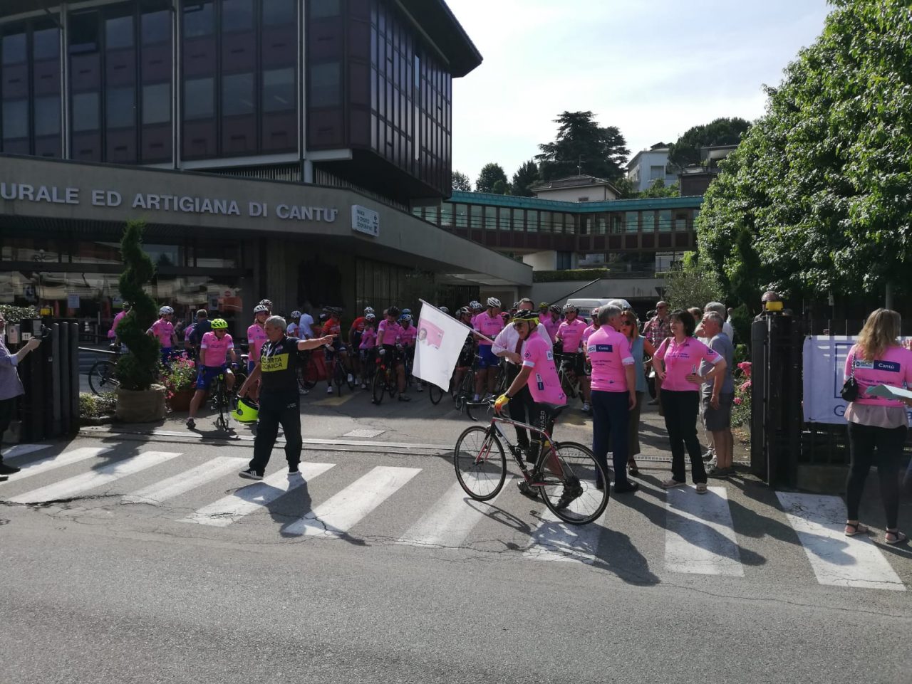 Sono partiti questa mattina poco dopo le 10 i cicloamatori di “Pedala col campione”, che accompagnano il Giro d’Italia rosa Iccrea. In testa al gruppo il campionissimo Claudio Chiappucci, che accompagnerà i ciclisti, tutti in maglia rosa, nella tappa che passa anche per il Comasco. Subito dopo passeranno anche le ragazze del vero Giro d’Italia, che si stanno dando battaglia per la maglia rosa. Alla partenza di “Pedala col campione”, nella sede della Cassa Rurale ed Artigiana di Cantù, anche il direttore Gianbattista Lanzi, l’assessore Antonella Colzani e il presidente del Cc Canturino Paolo Frigerio.
