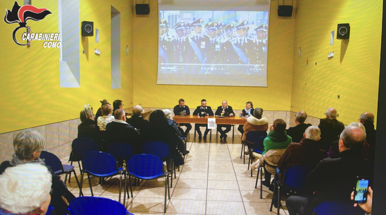 Prosegue l’impegno dei Carabinieri del Comando provinciale di Como nel campo della prevenzione di truffe ai danni degli anziani. Nei giorni scorsi, circa 75 persone hanno partecipato all’incontro organizzato al “Centro Anziani ATEL” di Lipomo, mentre altre 50 hanno preso parte all’appuntamento successivo ospitato “all’Oratorio di Albate”. A guidare gli incontri è stato il comandante della Stazione Carabinieri di Como-Albate, maresciallo capo Mario Iappelli, che ha illustrato ai presenti le principali tecniche utilizzate dai truffatori. Attraverso esempi concreti e casi realmente accaduti, sono stati analizzati i raggiri più diffusi: dalle false richieste di aiuto, spesso messe in atto da finti parenti in difficoltà, alle truffe telefoniche con sedicenti appartenenti alle forze dell’ordine o ad enti pubblici.