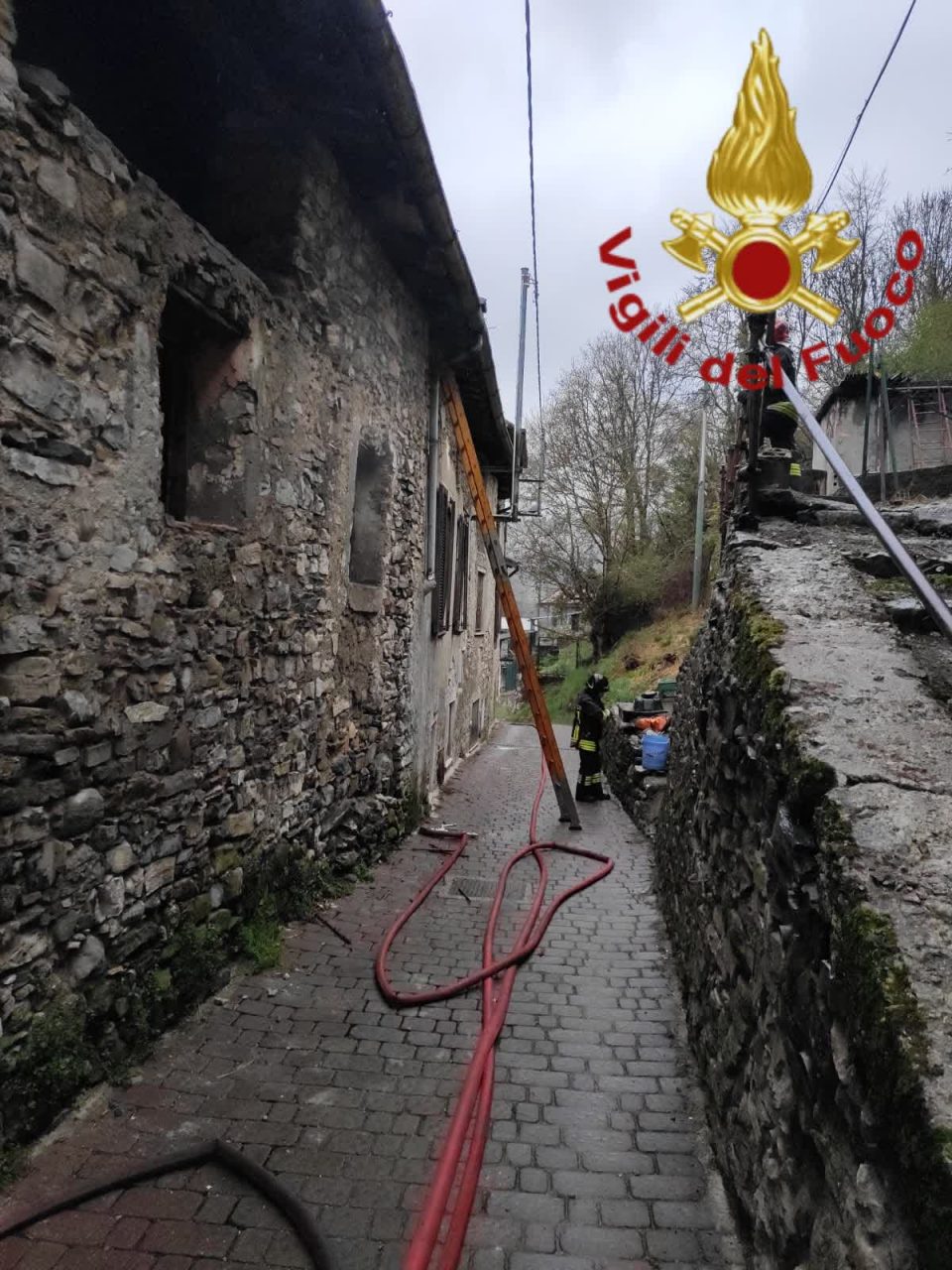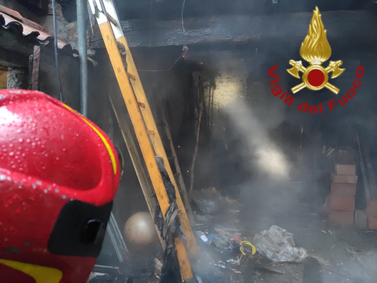 Incendio tetto ad Asso: intervento dei Vigili del Fuoco.