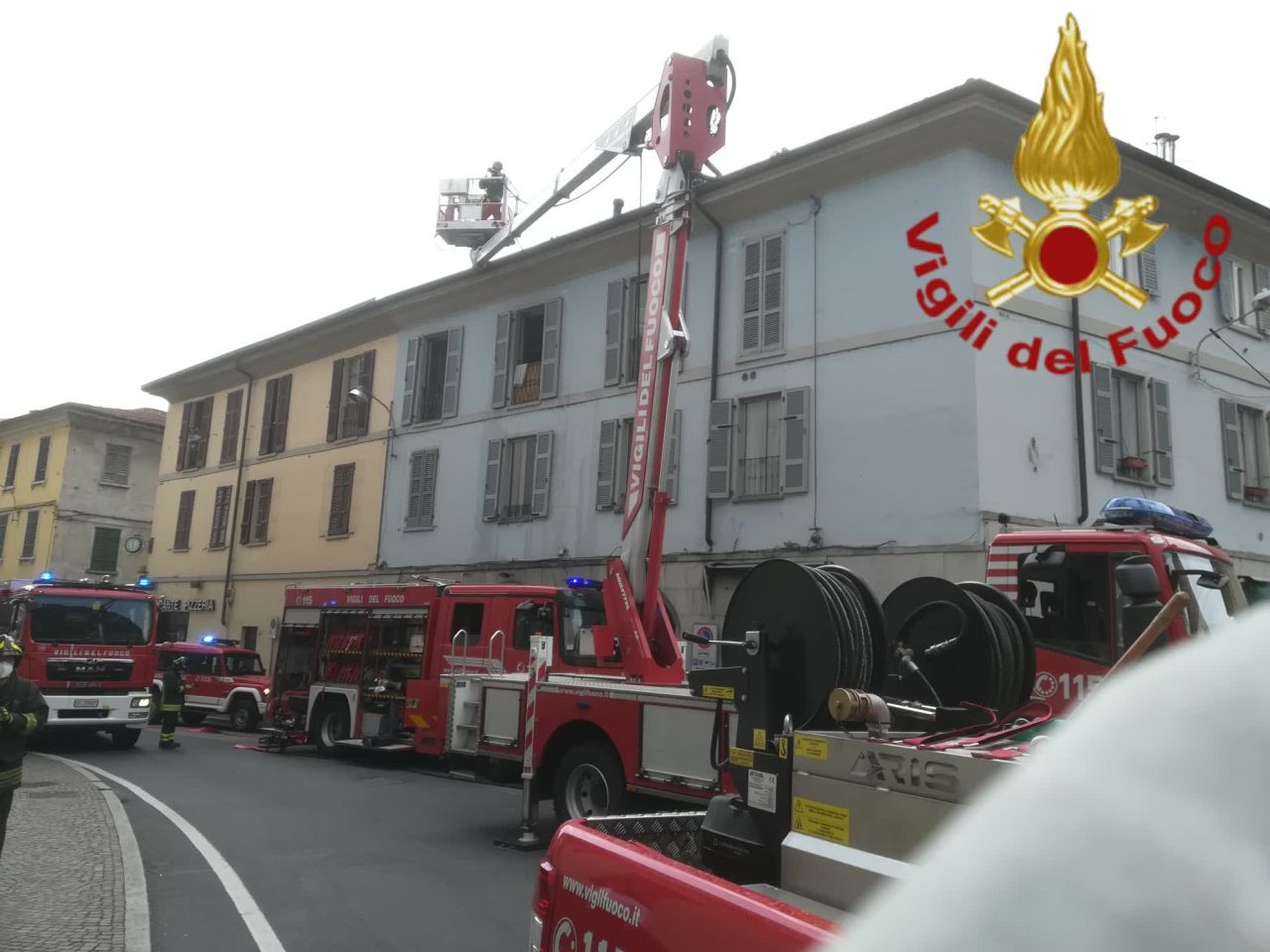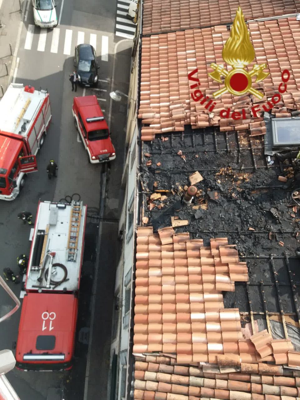Incendio tetto in via Manzoni a Como: maxi-mobilitazione di pompieri.