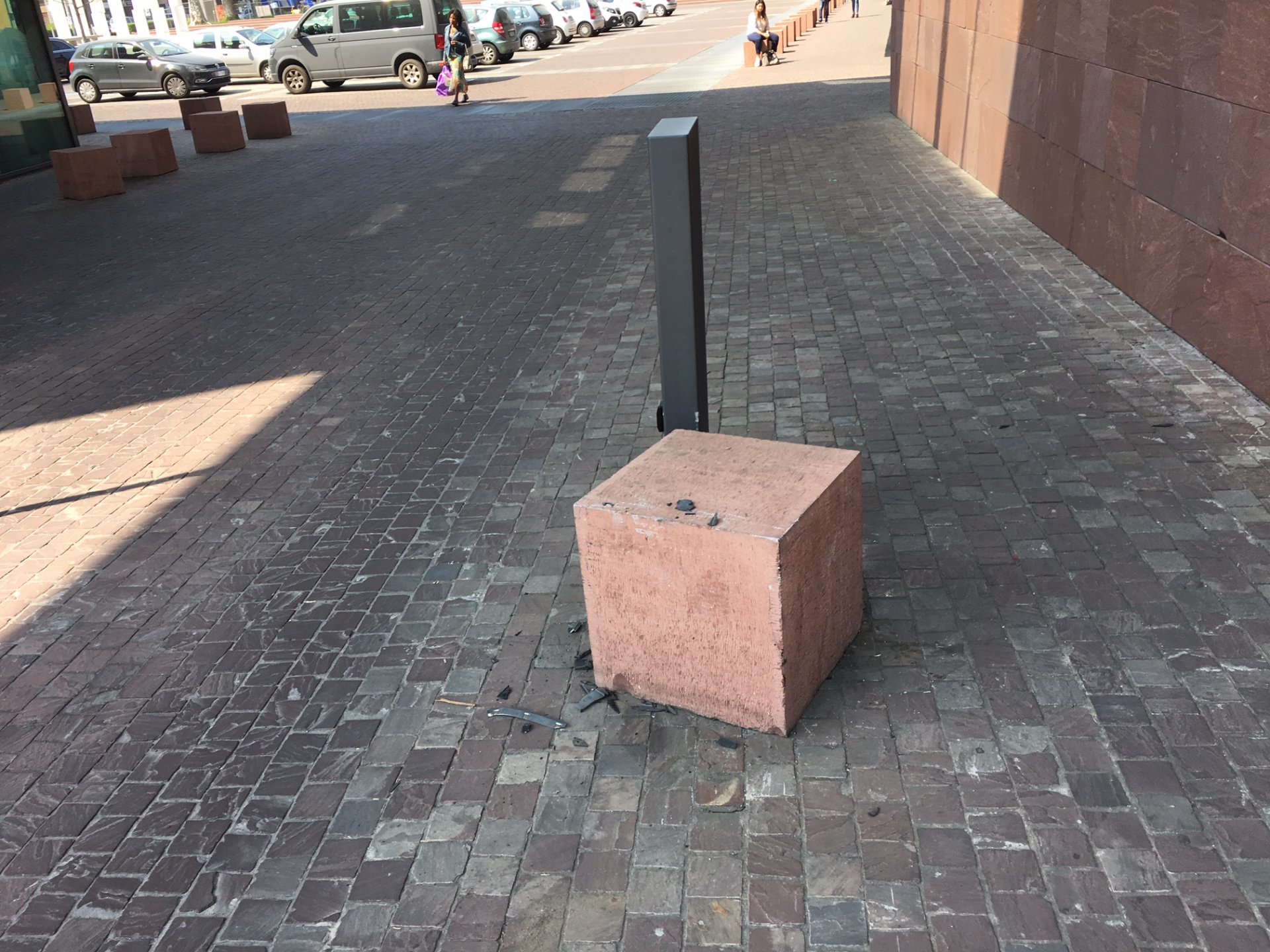 Incidente all’ingresso della piazza, auto finisce contro il blocco di granito.