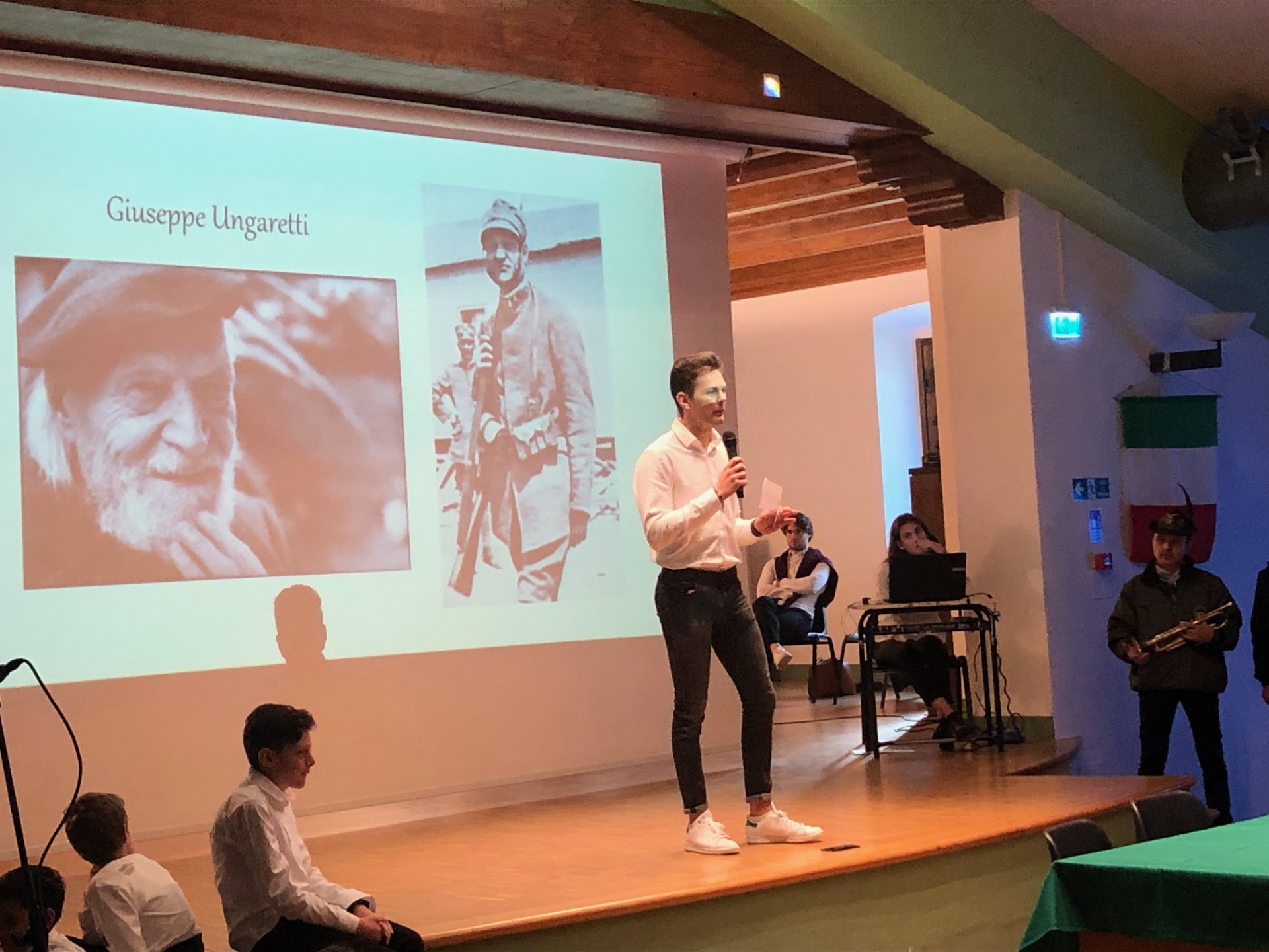 Atteso e commovente il ricordo del partigiano Ernesto Maltecca, da poco scomparso. Presenti in prima fila la figlia Franca e i nipoti di Ernesto, Davide e Alessia. Com voce commossa Giuliana Casartelli ha letto il discorso scritto da Ernesto nel 2016, poi ha lasciato la parola proprio ai due giovani, che hanno dato voce a ulteriori testimonianze scritte dal loro compianto nonno. La cerimonia ha visto impegnati in particolare gli alunni del Consiglio comunale junior della scuola media, una delegazione di studenti del “Terragni”, prodigatisi in un inquadramento storico della Prima guerra mondiale. Intervenuti anche gli alunni delle colassi quinte delle scuole primarie. Il coro della scuola media, diretto dal professor Armando Calvia, ha eseguito tre brani storici. Infine la presentazione, da parte degli Alpini, della nuova borsa di studio, questa volta dedicata al valore dell’alpinità vista attraverso un canale social come WhatsApp: alunni invitati a partecipare. Sulle toccanti note del Silenzio, suonate da un alpino con la tromba, la chiusura della cerimonia al Medioevo. Infine, la deposizione delle corone al monumento ai Caduti.