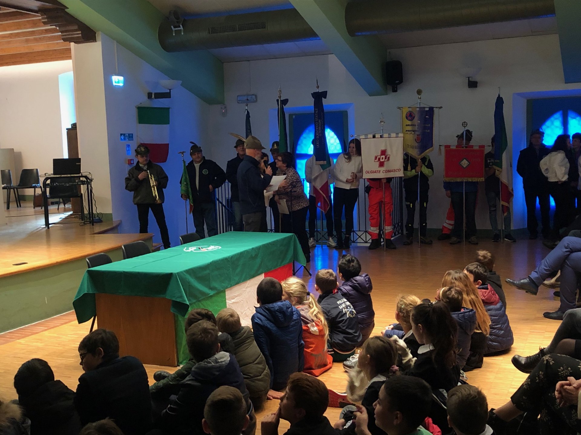 IV Novembre, cerimonia affollata nella mattina di oggi, lunedì 4 novembre, grazie alla partecipazione delle scuole di Olgiate Comasco.