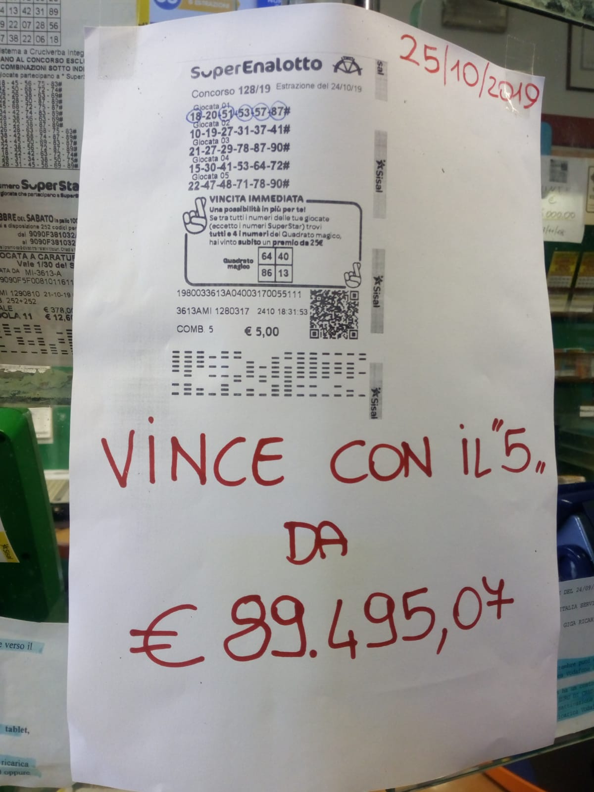 Vinti 89mila euro al Superenalotto
