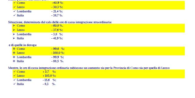 Lecco + 906,5 % cassa ordinaria settore tessile
