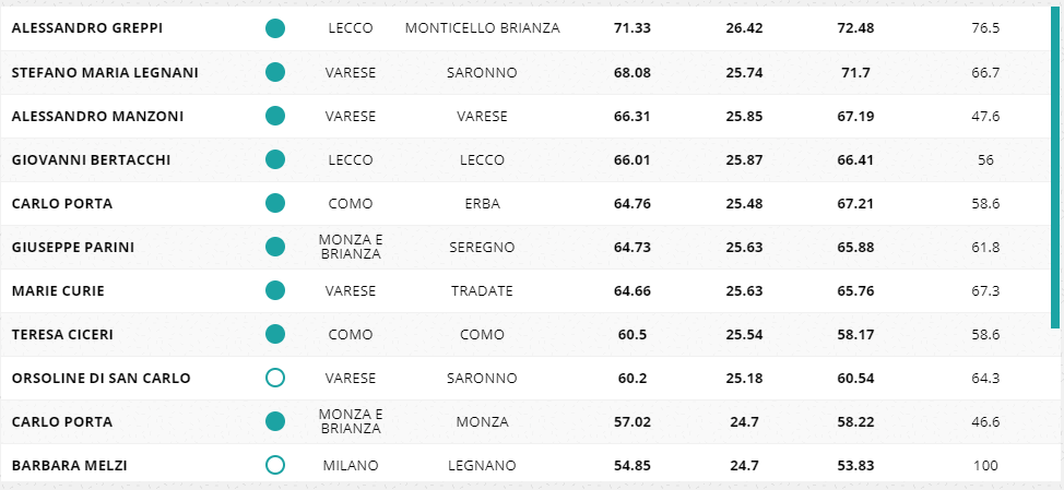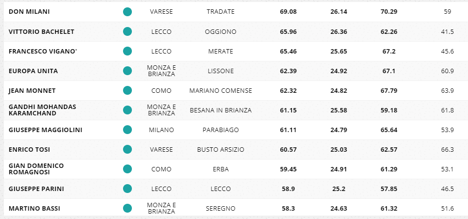 Nella top 5 svetta il Carlo Porta di Erba. Bene anche l’istituto Teresa Ciceri di Como che si piazza ottavo.