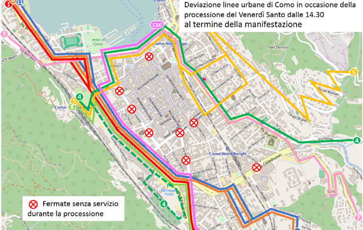 Modifiche alla circolazione di ASF per la processione del venerdì santo a Como