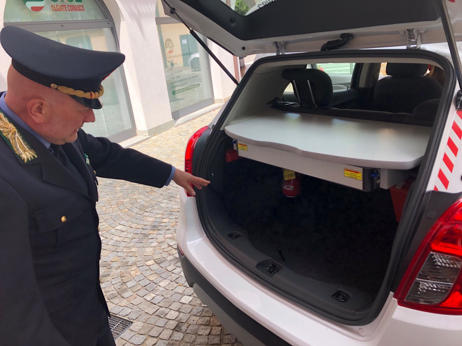 Ufficialmente consegnato venerdì 3 maggio, il veicolo migliora il parco mezzi affidato agli agenti olgiatesi. Si tratta di una Opel Mokka X (1.600 di cilindrata, turbodiesel), costata alle casse comunali 28.600 euro. Immatricolata con targa Polizia locale – la prima volta per il Comando di Olgiate Comasco – è caratterizzata da equipaggiamento che garantisce massima funzionalità e visibilità, sempre nell’ottica di aumentare la sicurezza sul territorio. E’ fornita anche di telecomando con cui è possibile attivare luci e sirena e pure un microfono per l’opzione altoparlante. Sul retro, abbinato al pianale, un vano attrezzato.
