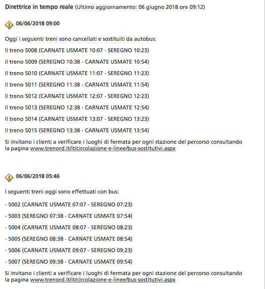 Situazione particolarmente difficile anche per chi prende quotidianamente la linea Seregno Carnate, dove però è attivo un servizio di autobus sostitutivi: