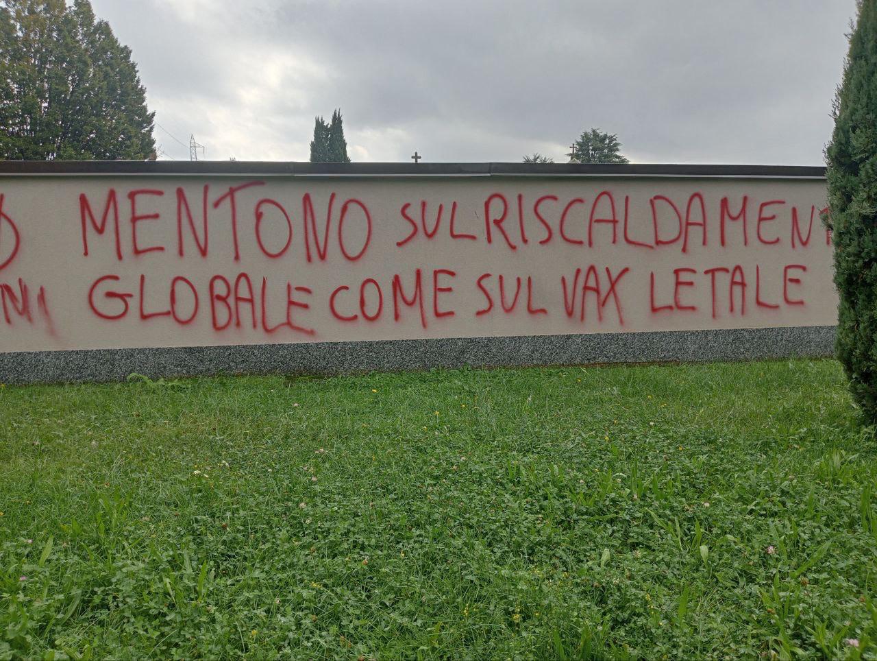 “Mentono sul riscaldamento globale come sul vax letale”, “#stopleggelorenzin”, “Lotta coi vivi”: queste alcune delle frasi lasciate con l’inchiostro rosso sui muri presi di mira da un raid no vax a Novedrate. Imbrattati i muri del cimitero e della scuola primaria “Don Stanislao Zanolli”.