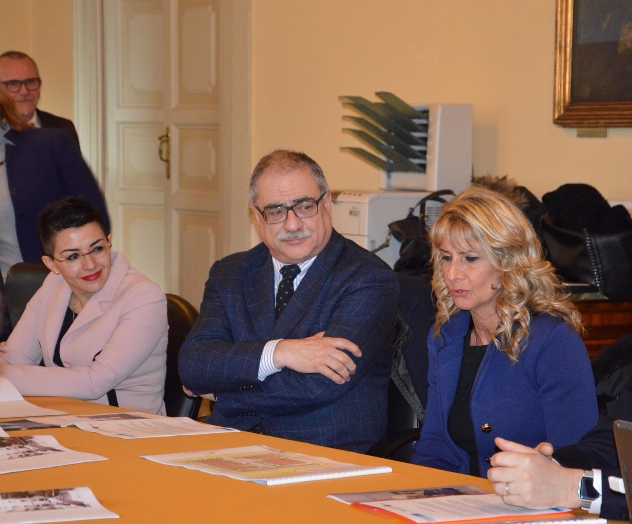 L'assessore al Turismo Simona Rossotti, il sindaco Mario Landriscina e l'architetto Roberta Peverelli
